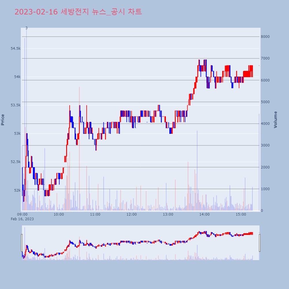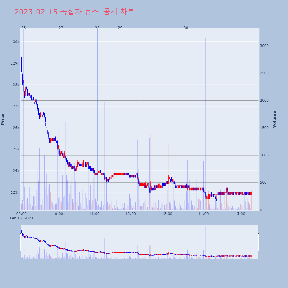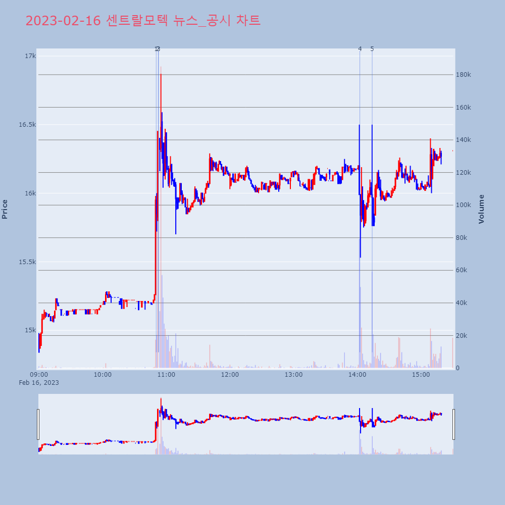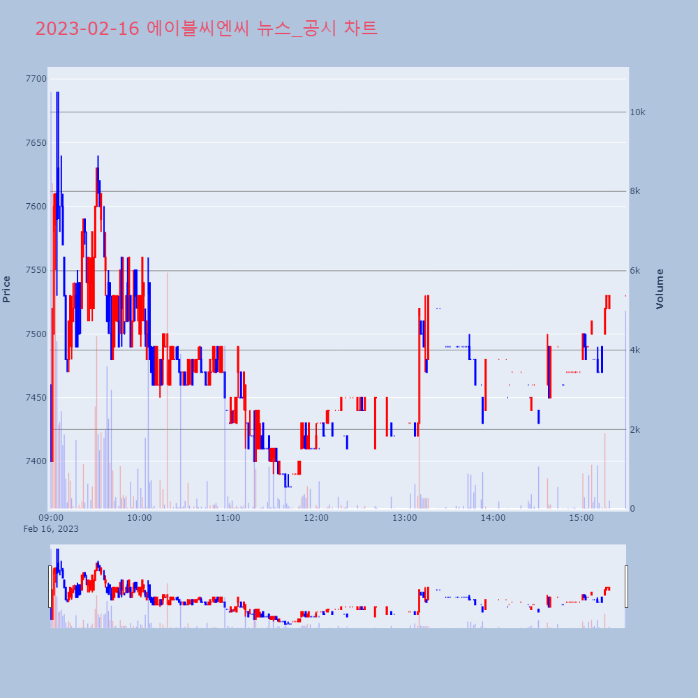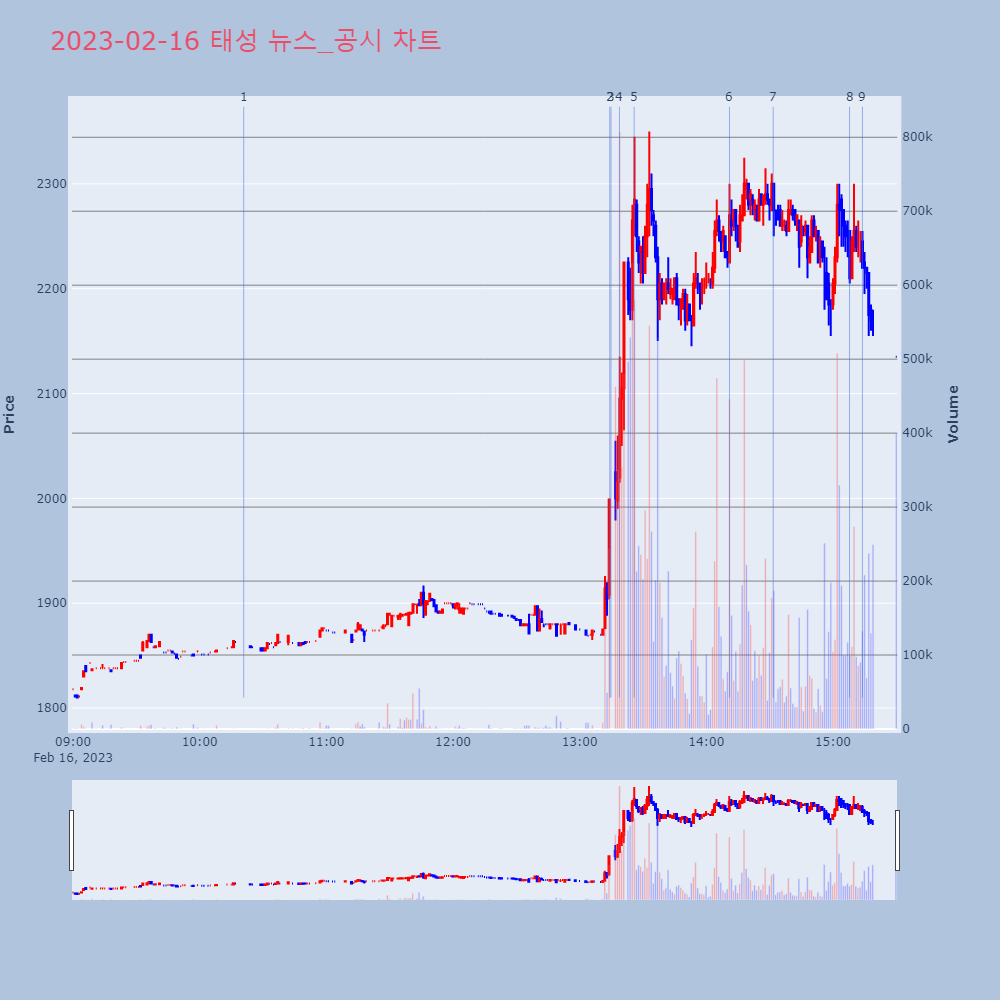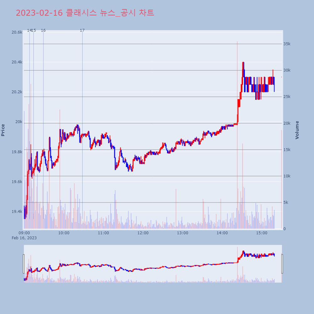 | 2023-02-16 17:16:00 | 20230216800750 | 매출액또는손익구조30%(대규모법인은15%)이상변경 |