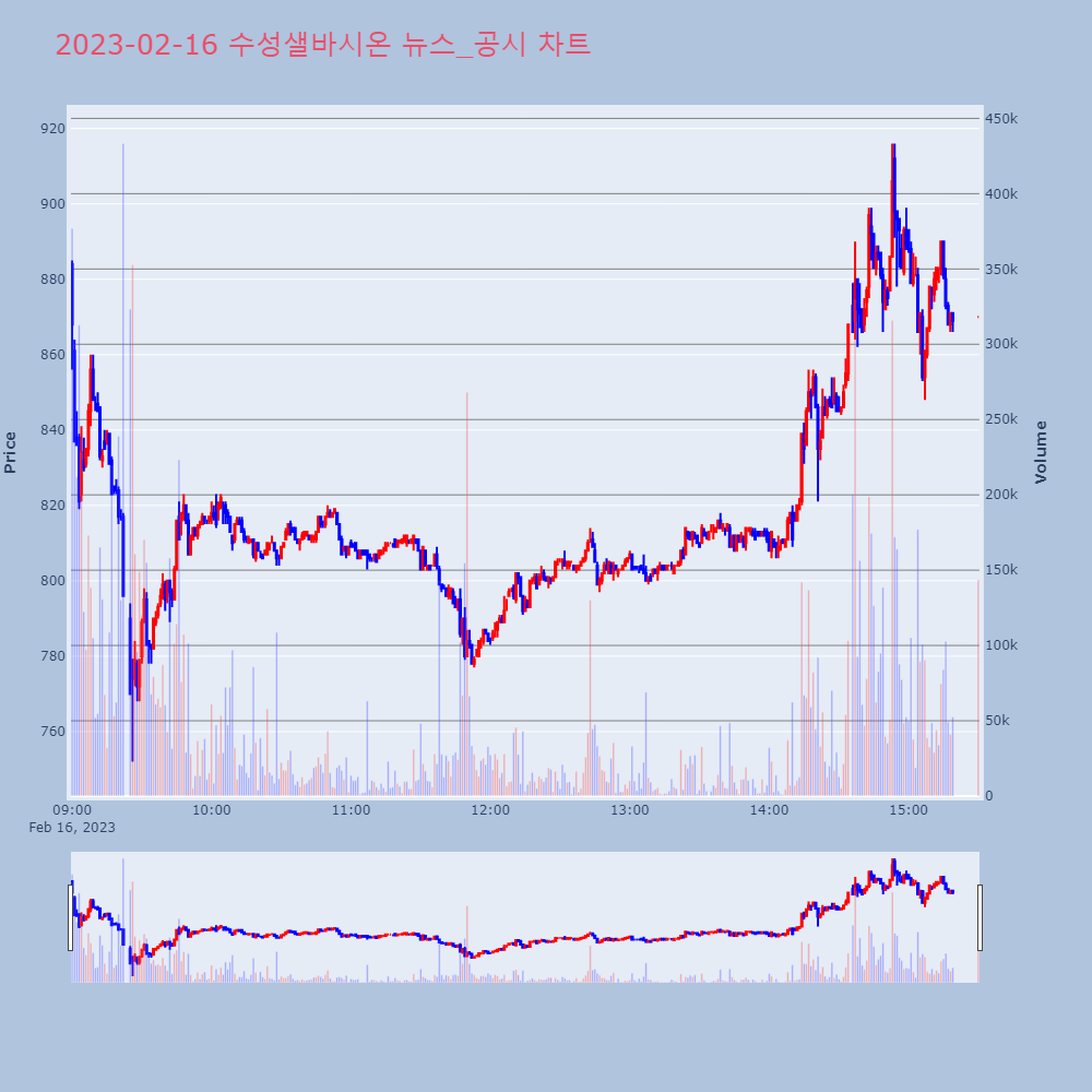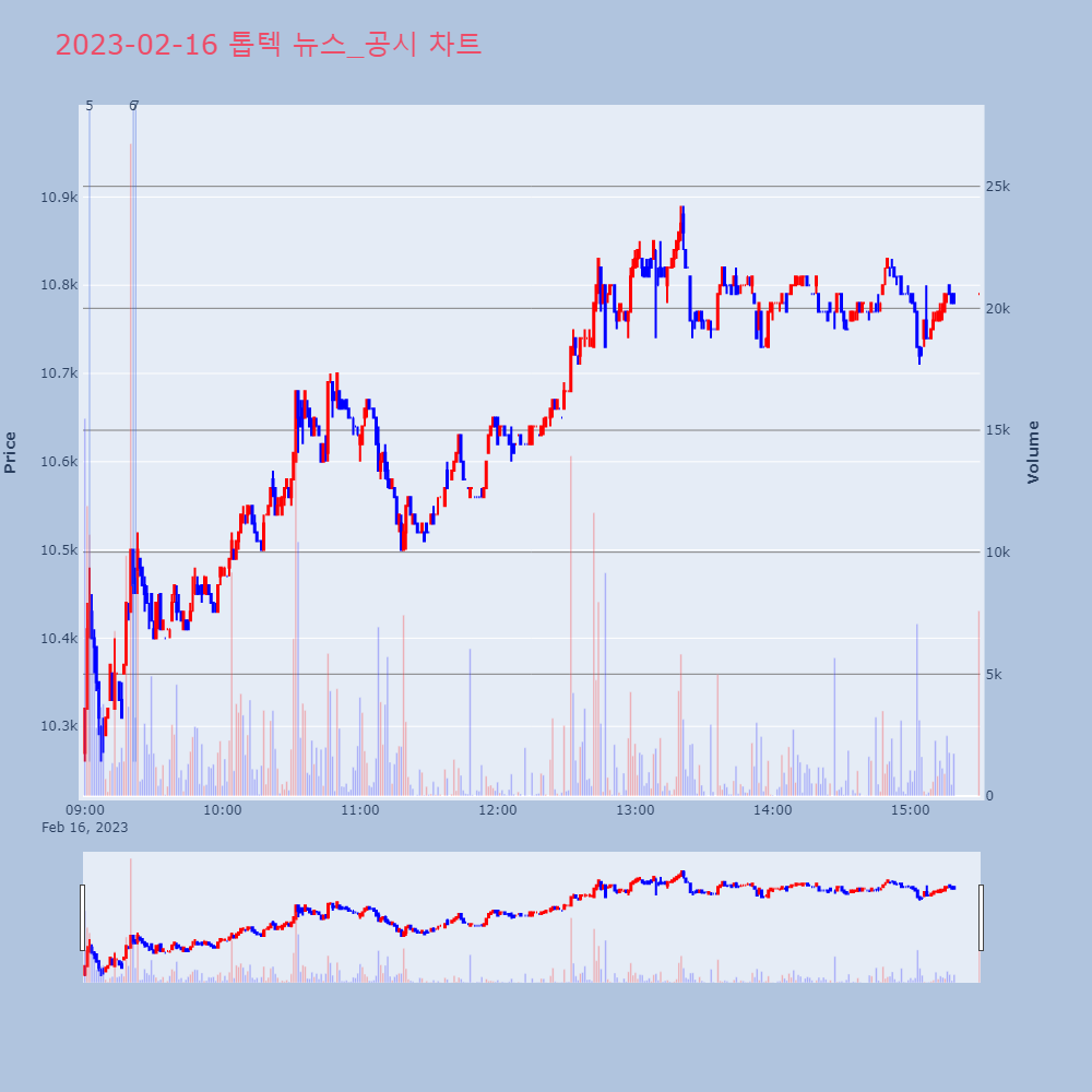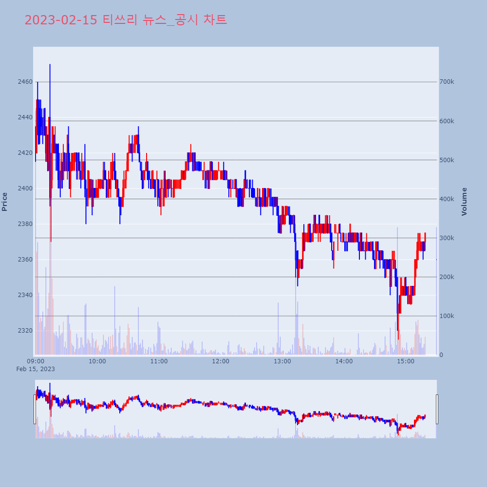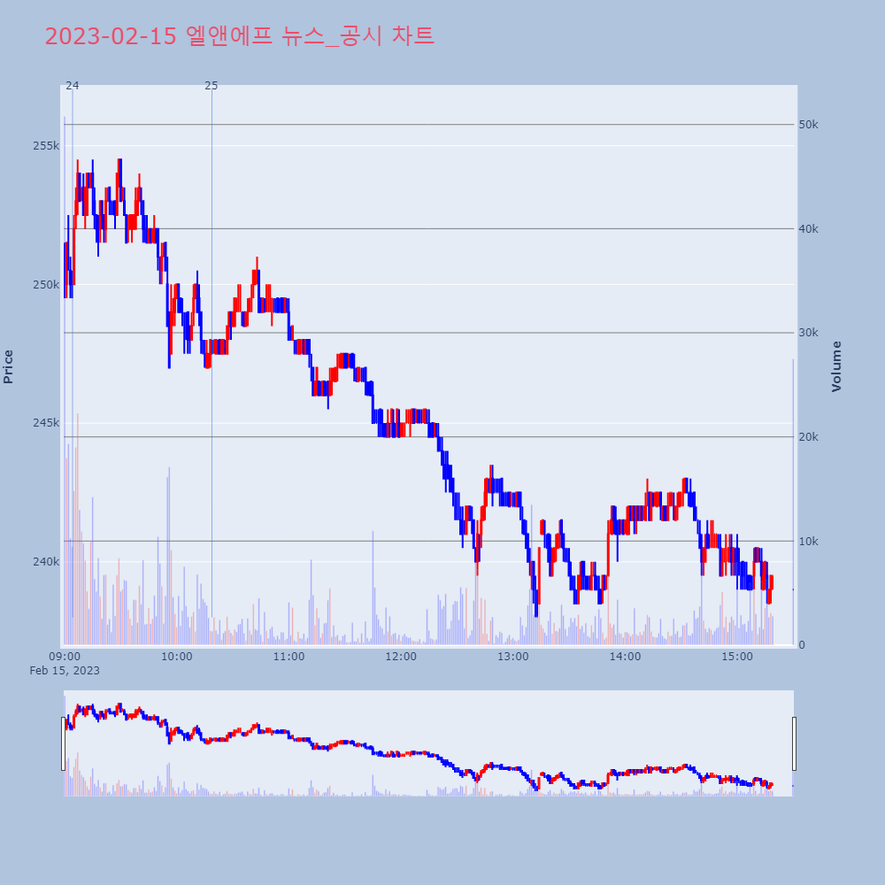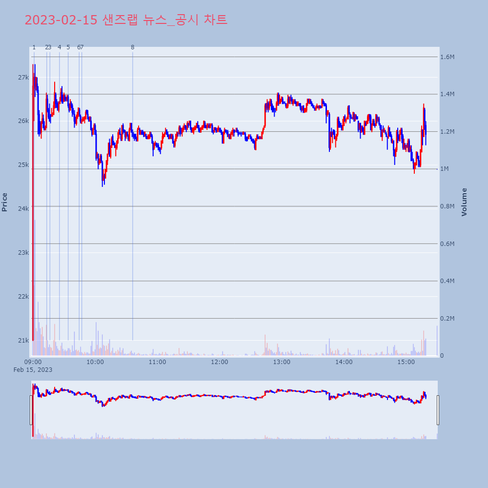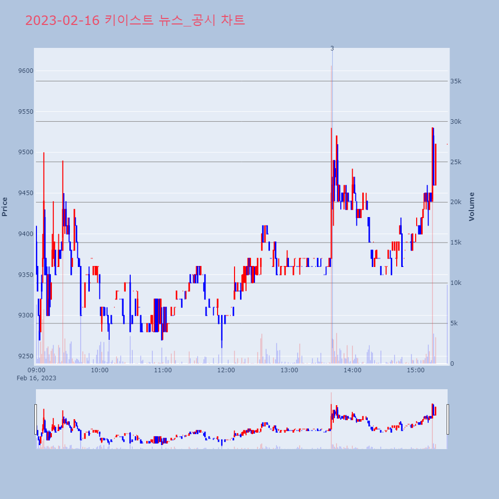 | 2023-02-16 17:16:00 | 20230216800750 | 매출액또는손익구조30%(대규모법인은15%)이상변경 |