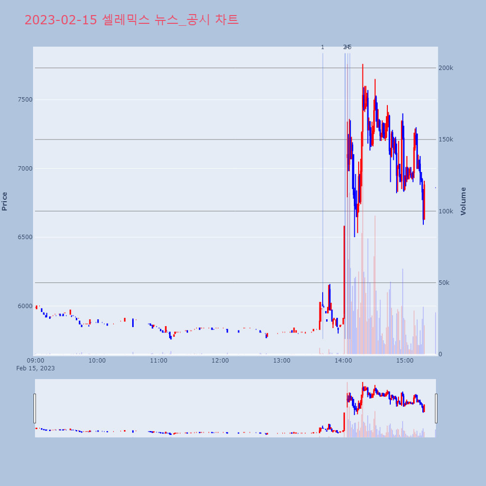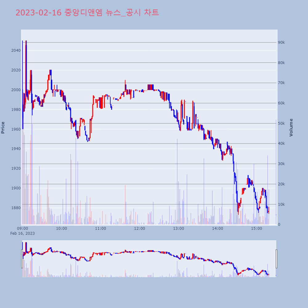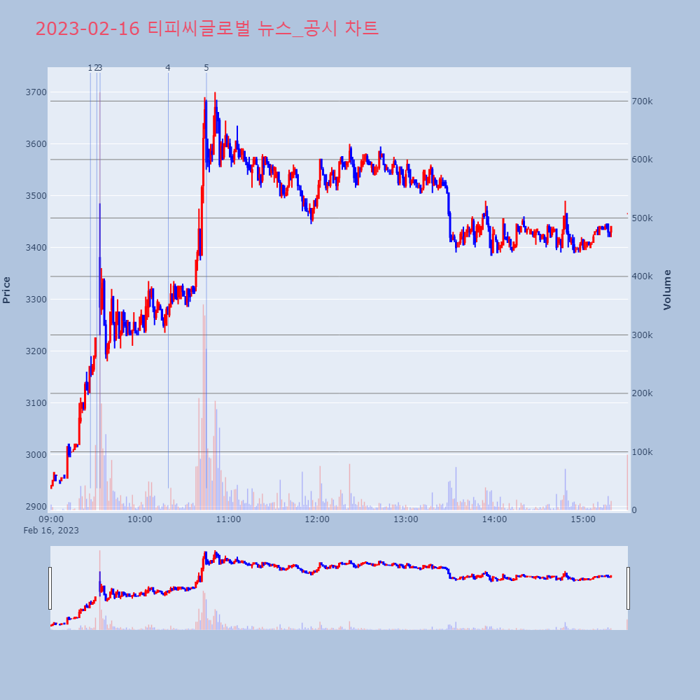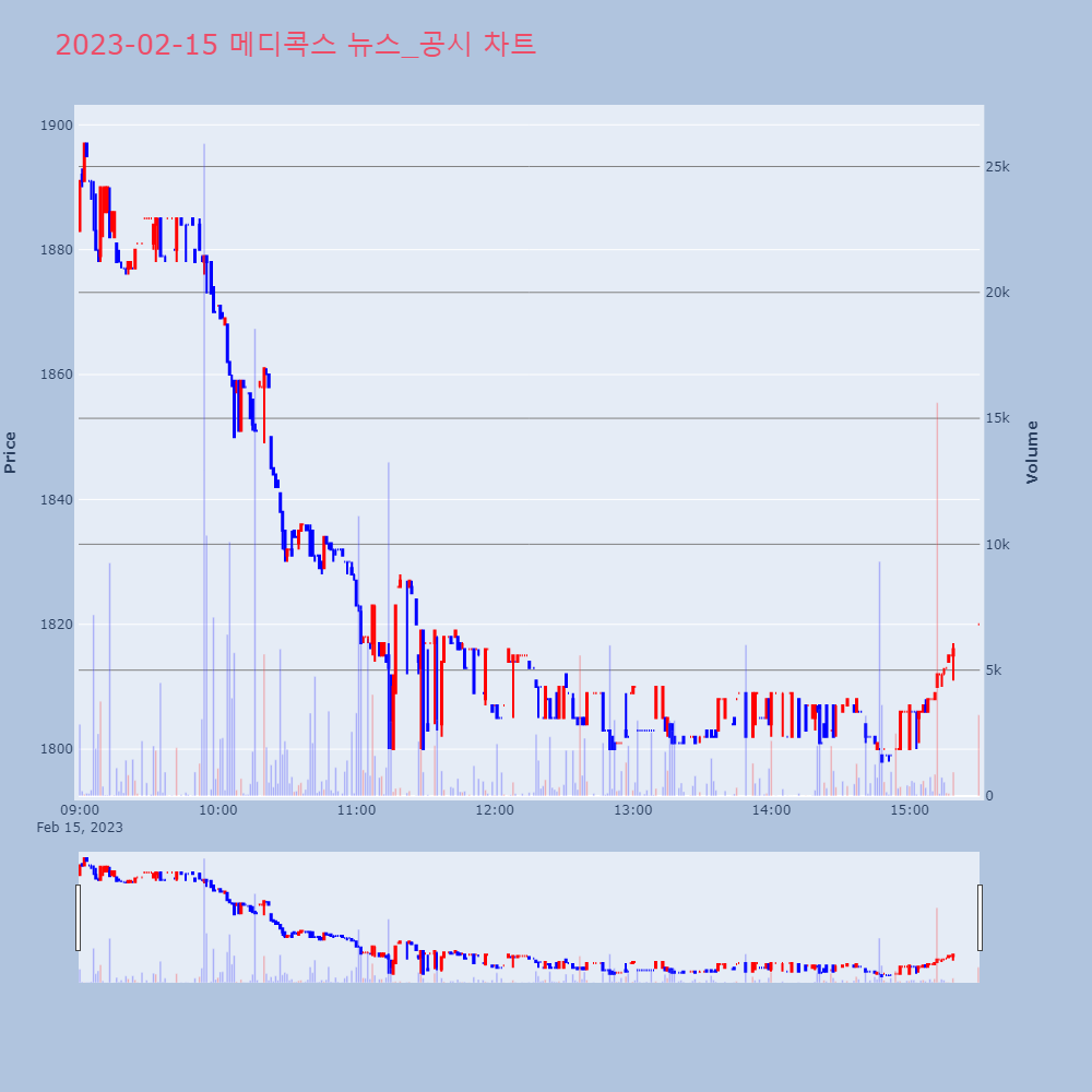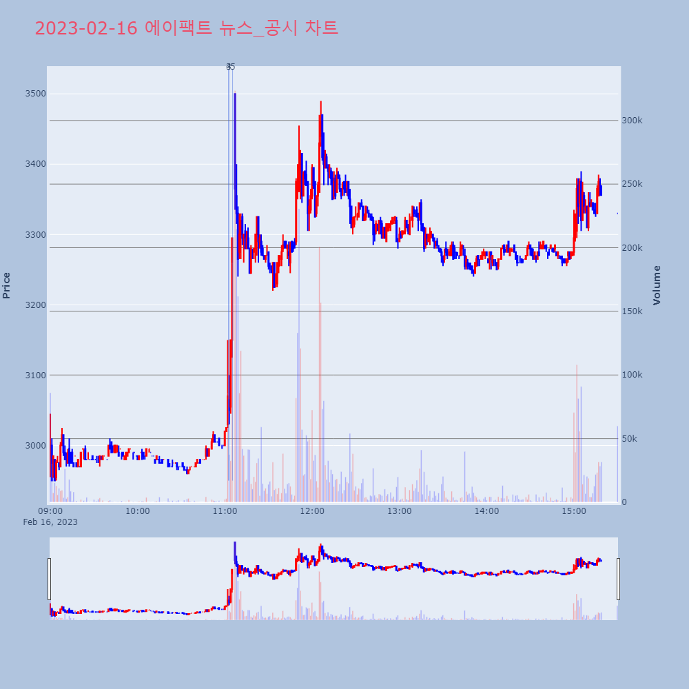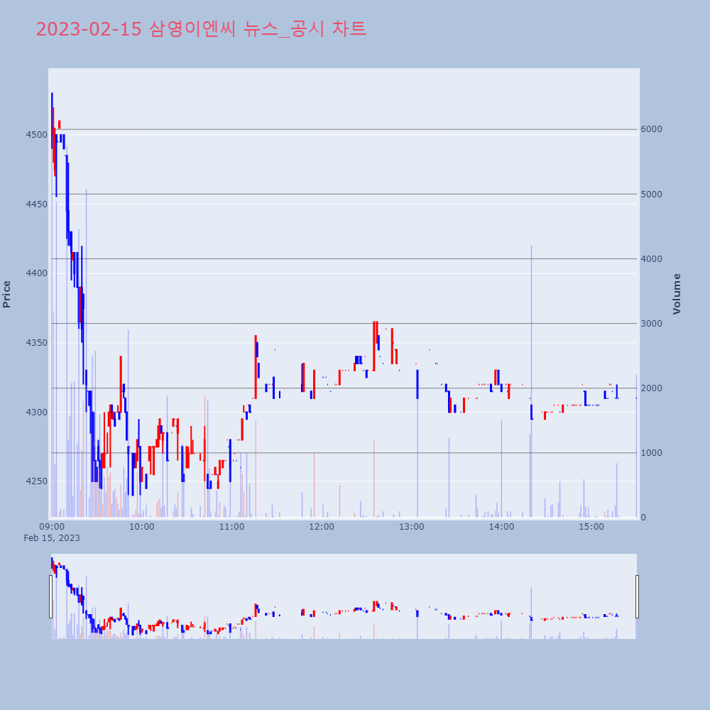 | 2023-02-16 17:16:00 | 20230216800750 | 매출액또는손익구조30%(대규모법인은15%)이상변경 |