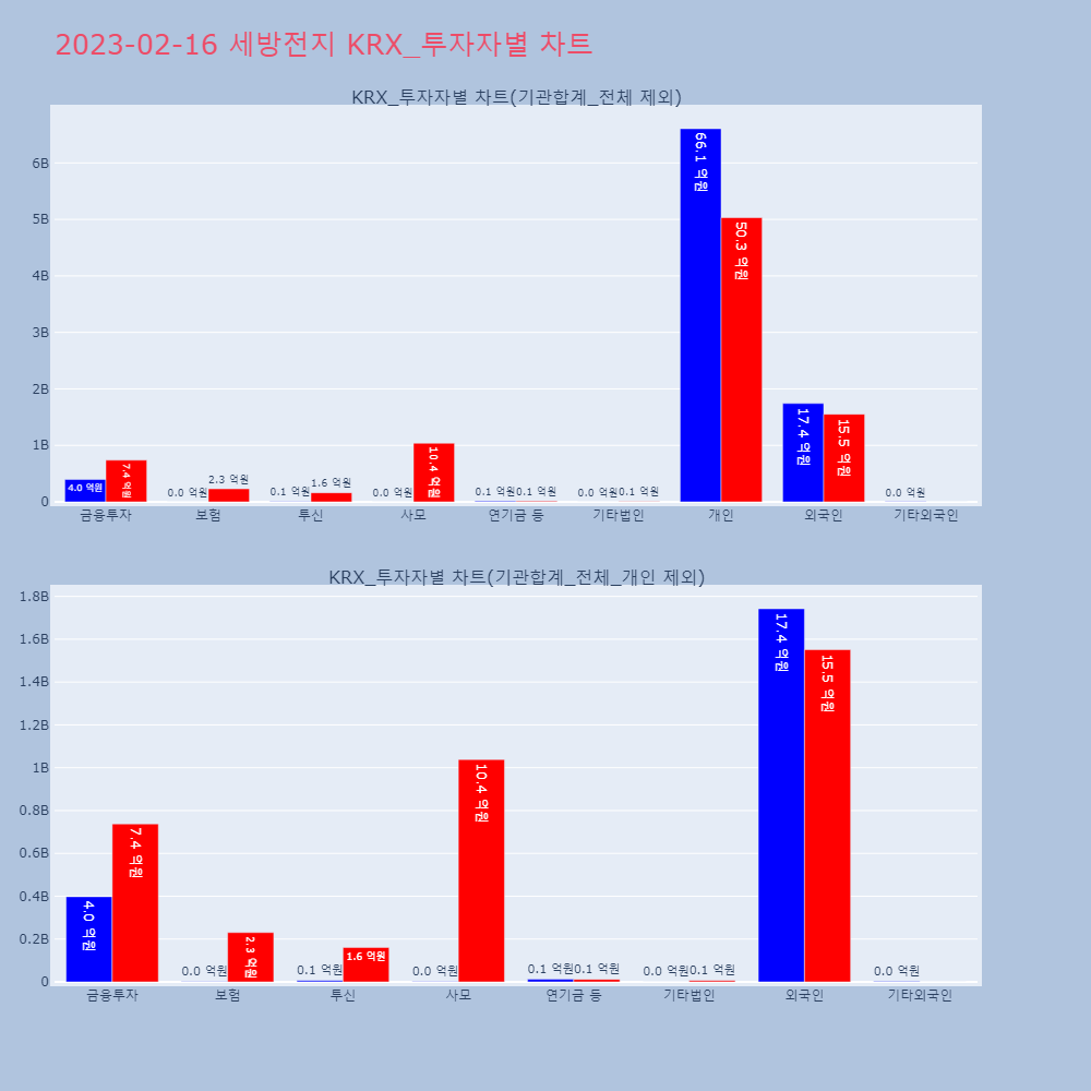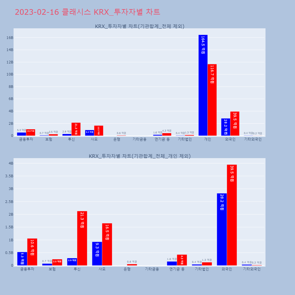 | 투자기관 | 거래량_매도 | 거래량_매수 | 거래량_순매수 | 거래대금_매도 | 거래대금_매수 | 거래대금_순매수 |