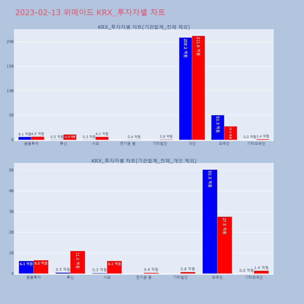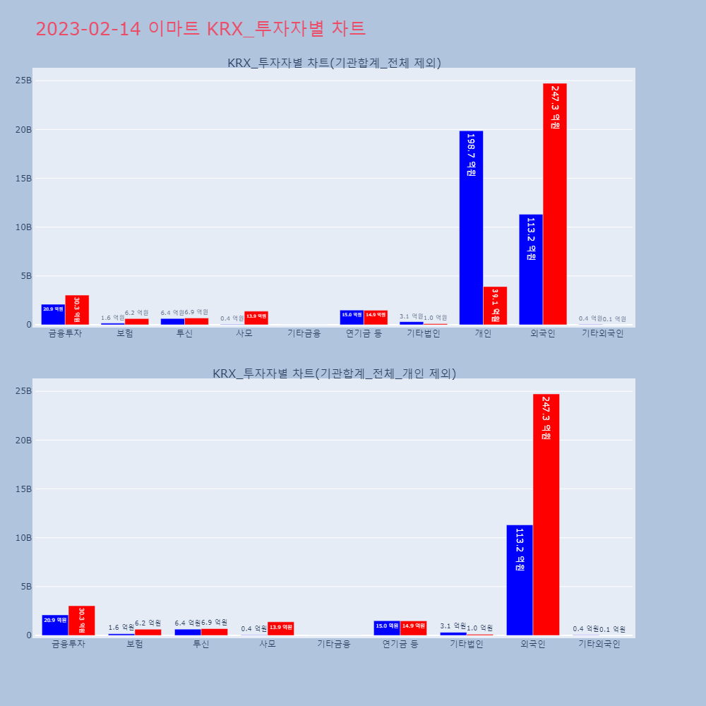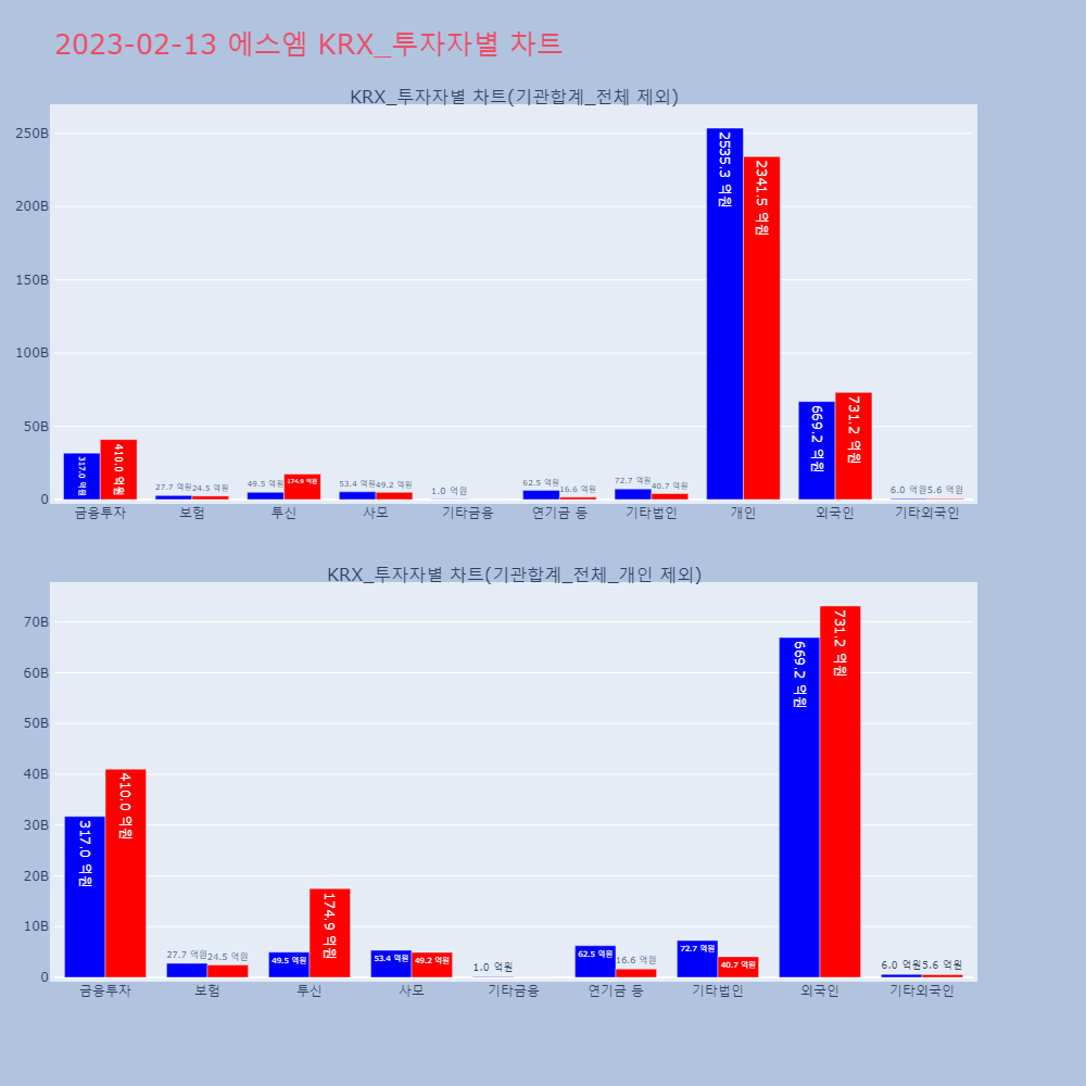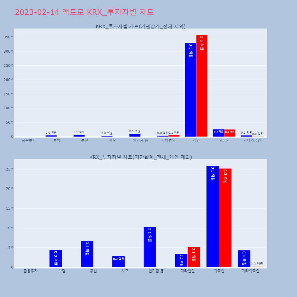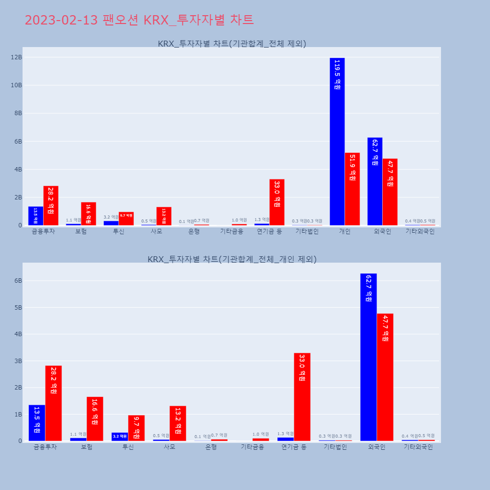 | 투자기관 | 거래량_매도 | 거래량_매수 | 거래량_순매수 | 거래대금_매도 | 거래대금_매수 | 거래대금_순매수 |