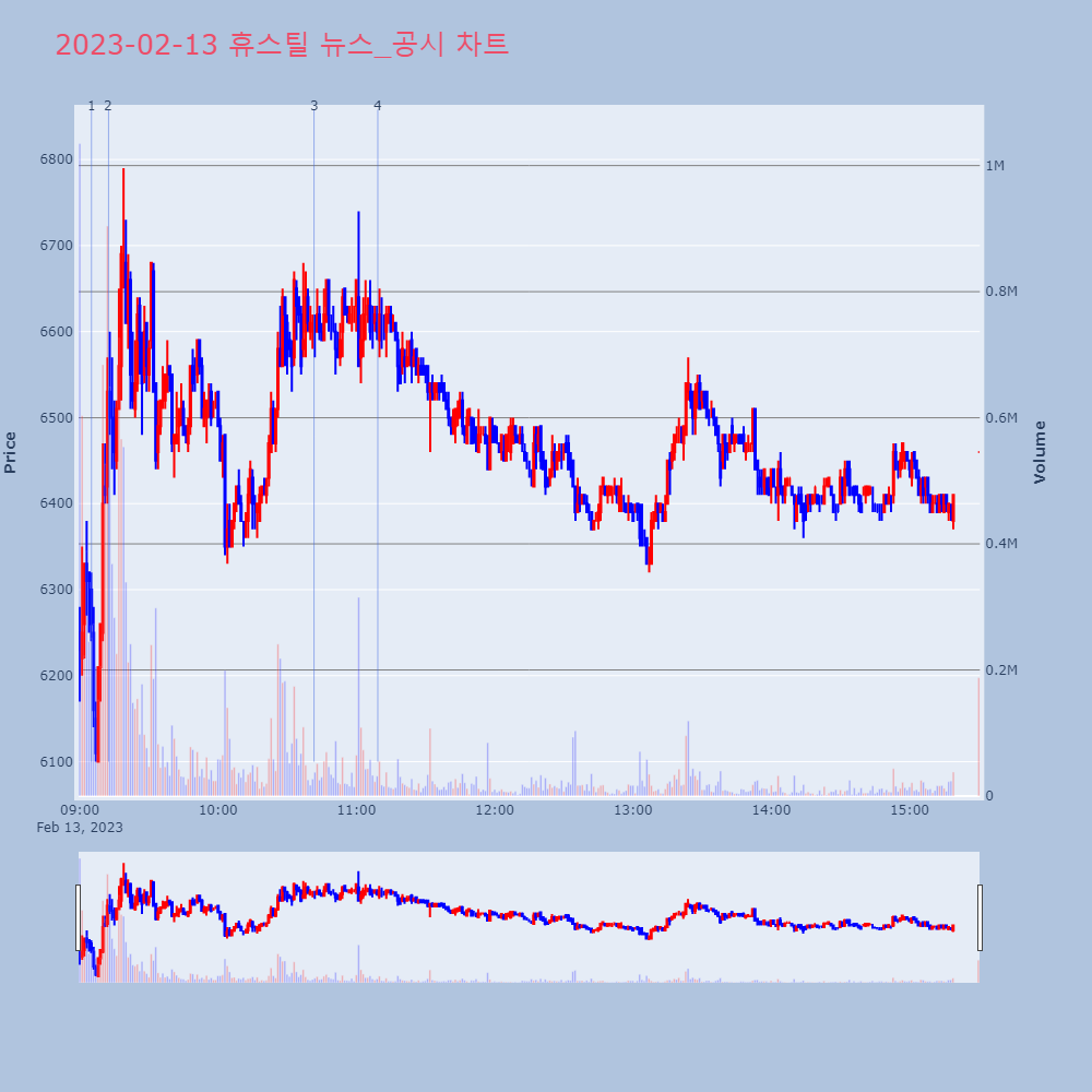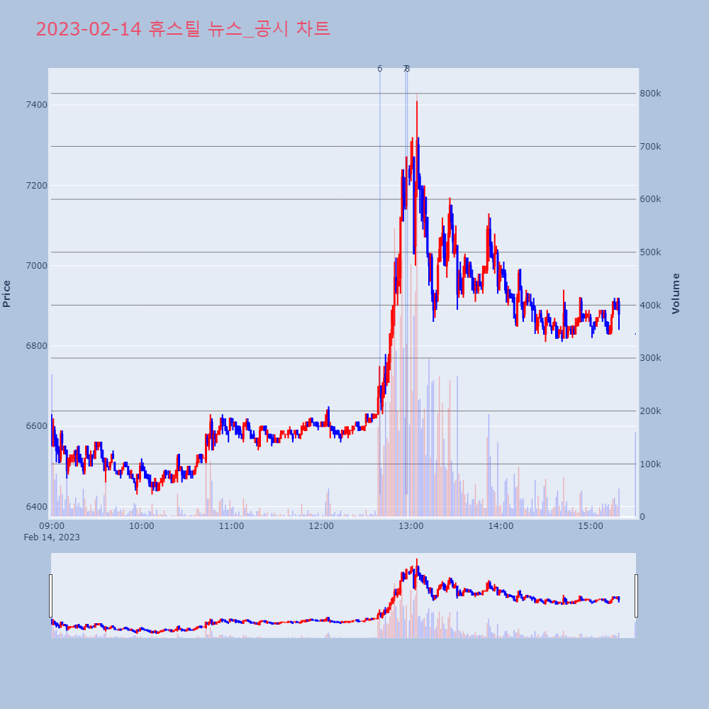 | 8 | 휴스틸, +12.38% VI 발동휴스틸이 VI가 발동했다. 전일 대비 12.38% 상승 | 조선경제 | 휴스틸 | 2023-02-14 12:57:40 |