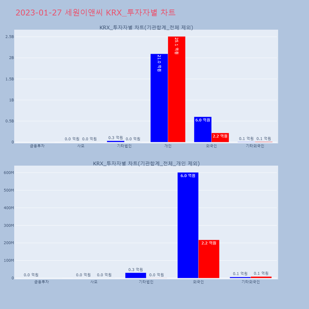 | 투자기관 | 거래량_매도 | 거래량_매수 | 거래량_순매수 | 거래대금_매도 | 거래대금_매수 | 거래대금_순매수 |