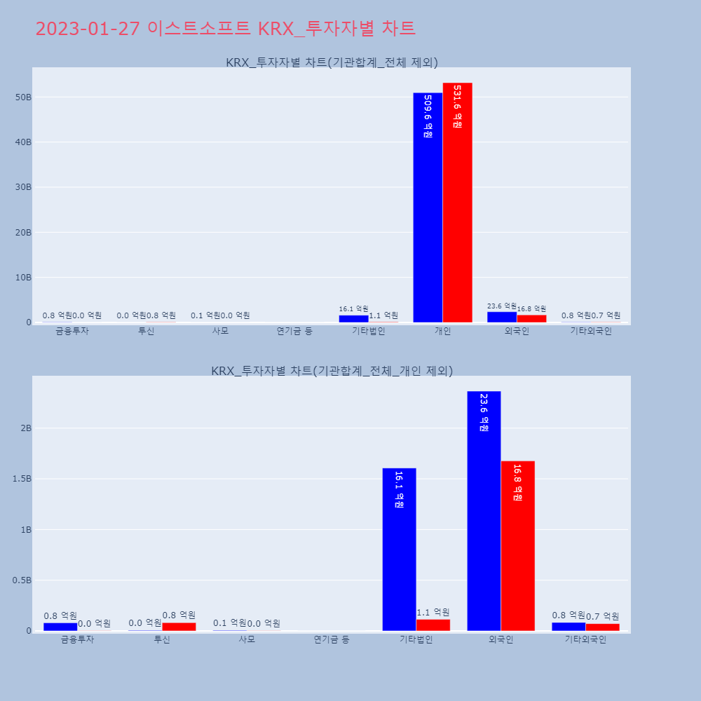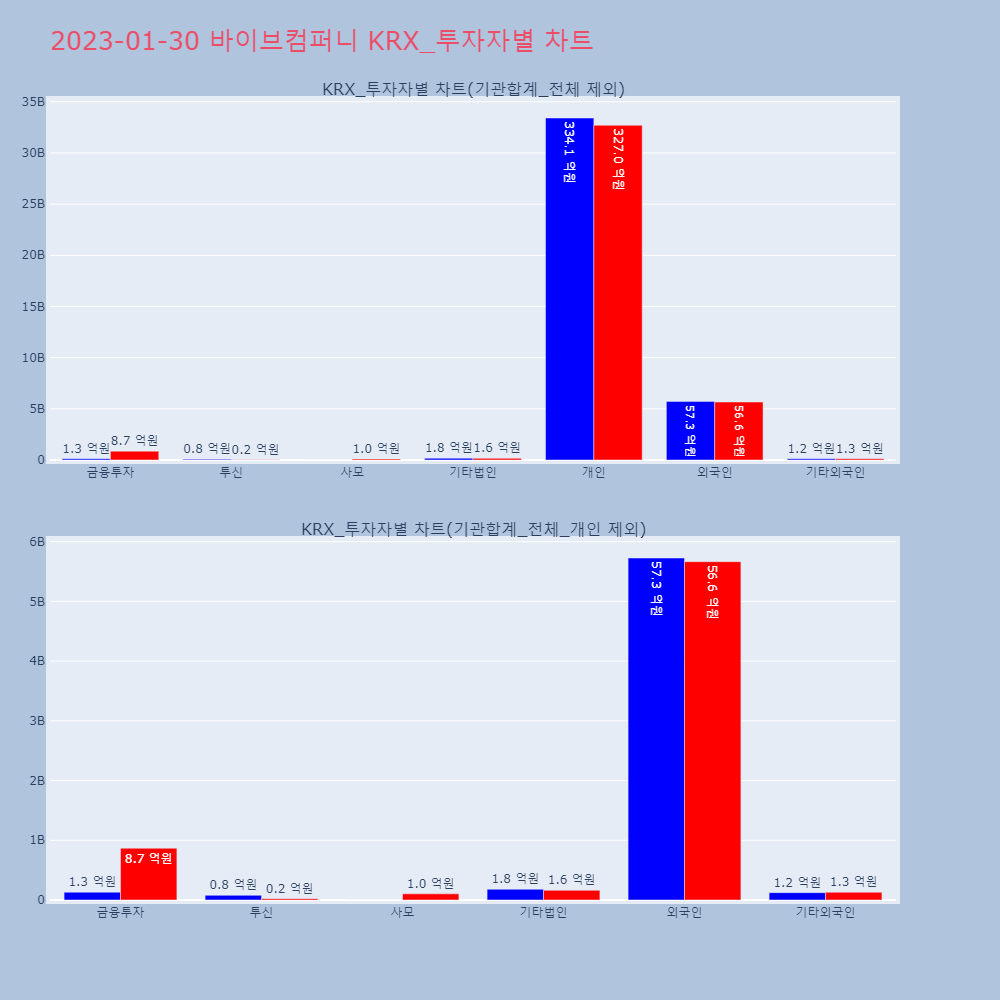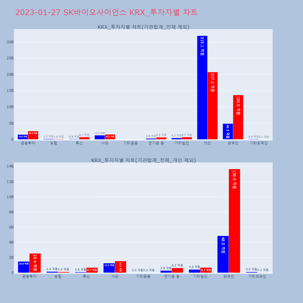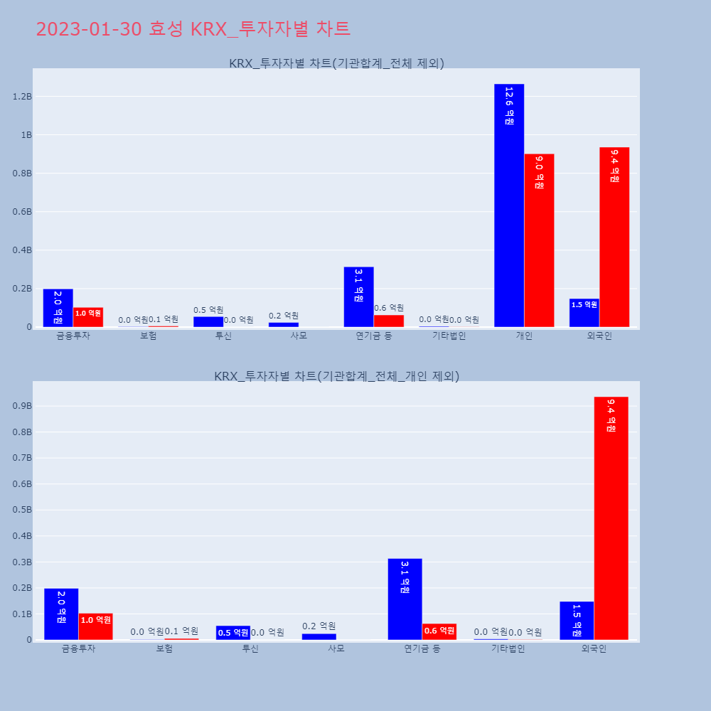 | 외국인 | 132,775 | 102,013 | -30,762 | 12,563,807,900 | 9,577,111,900 | -2,986,696,000 |