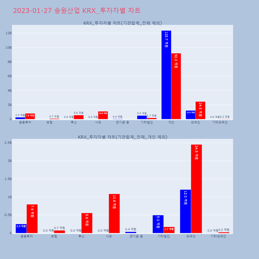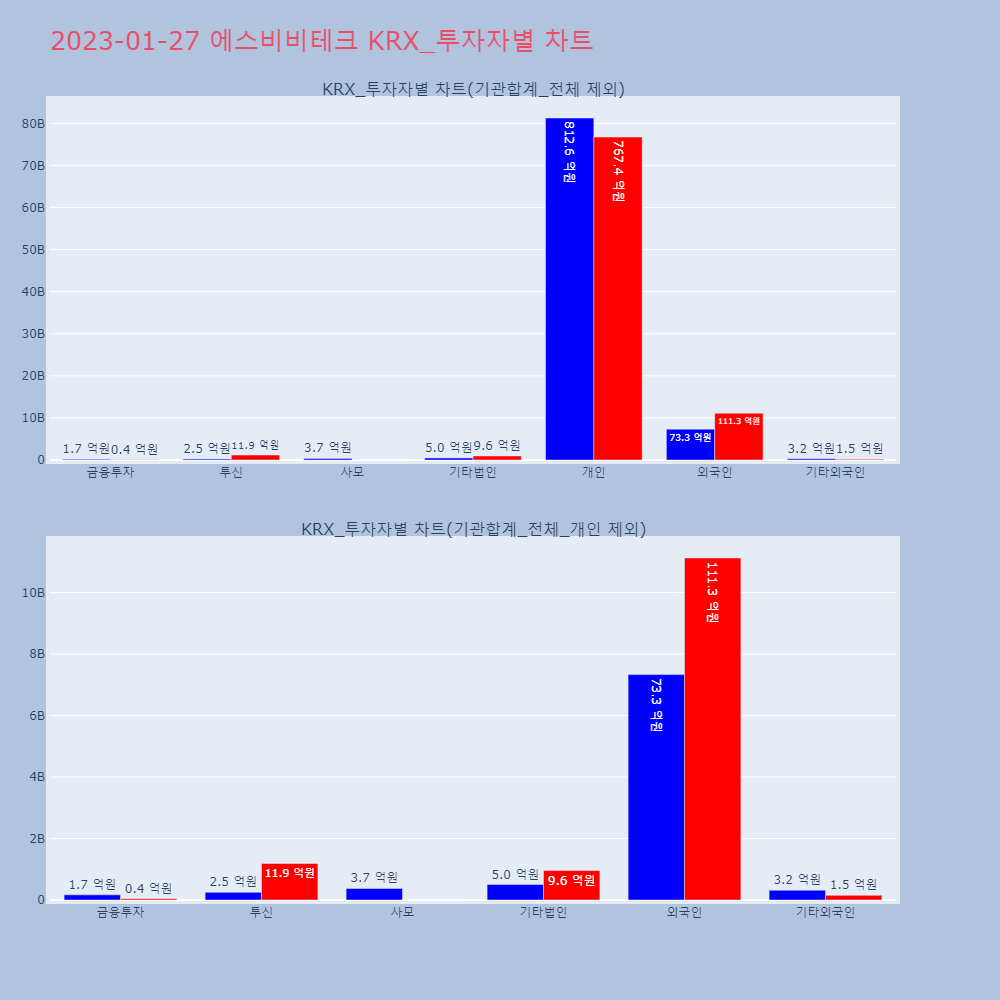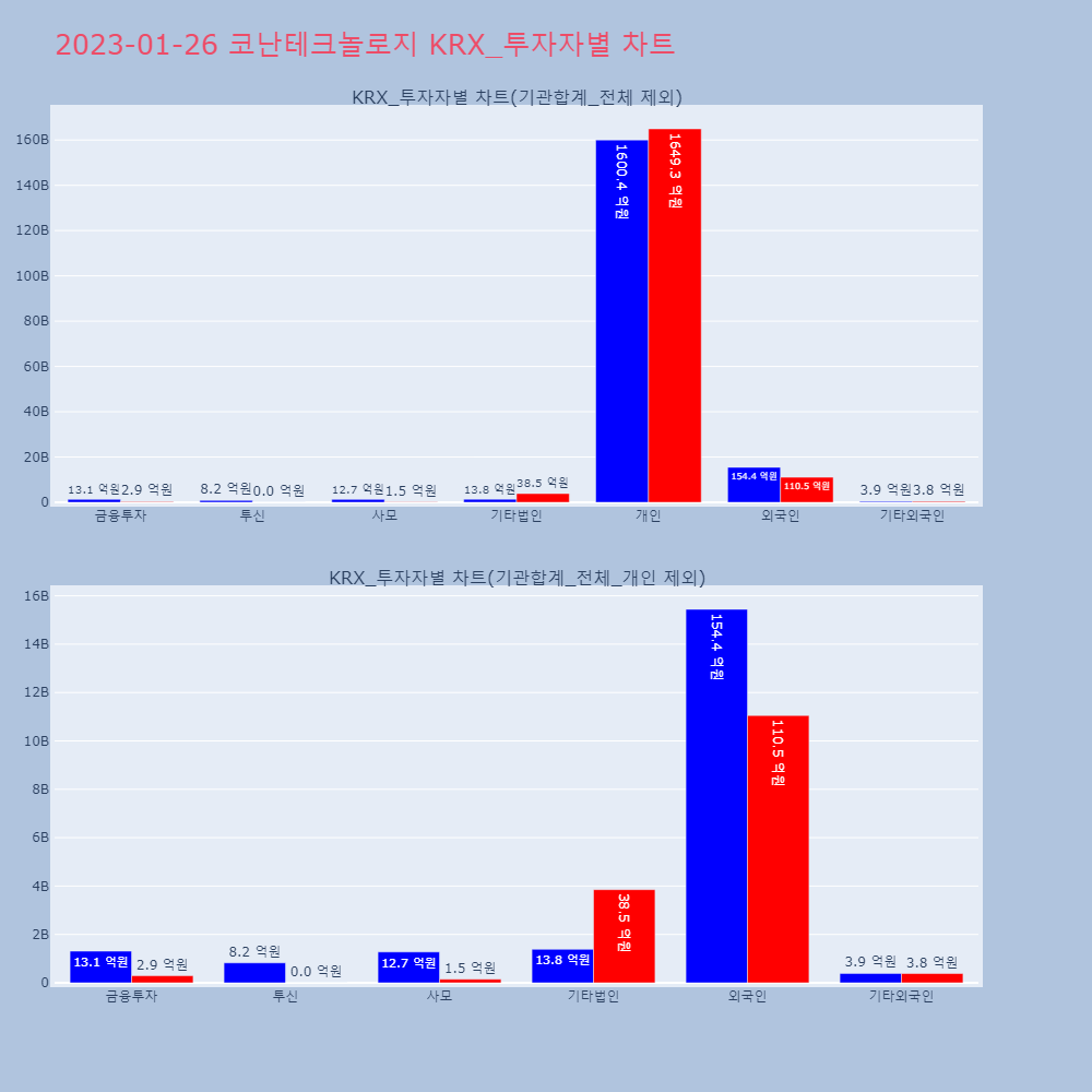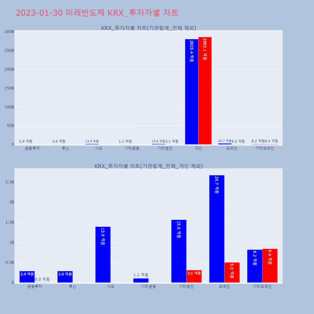 | 외국인 | 132,775 | 102,013 | -30,762 | 12,563,807,900 | 9,577,111,900 | -2,986,696,000 |