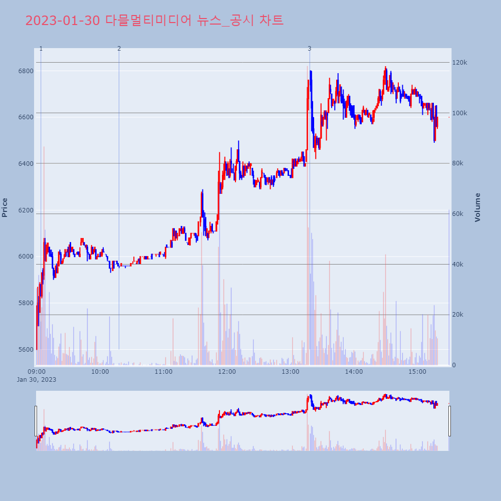 | 3 | 다믈멀티미디어(093640) 급등세 기록중 +20.50%, VI발동 기업개요 소비자(Consumer)용 멀티미디어 반도체 | 인포스탁 | 다믈멀티미디어 | 2023-01-30 13:18:20 |