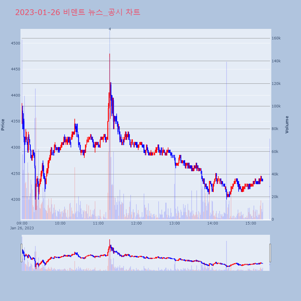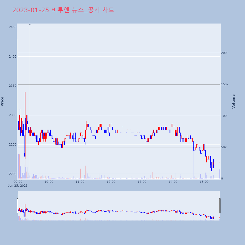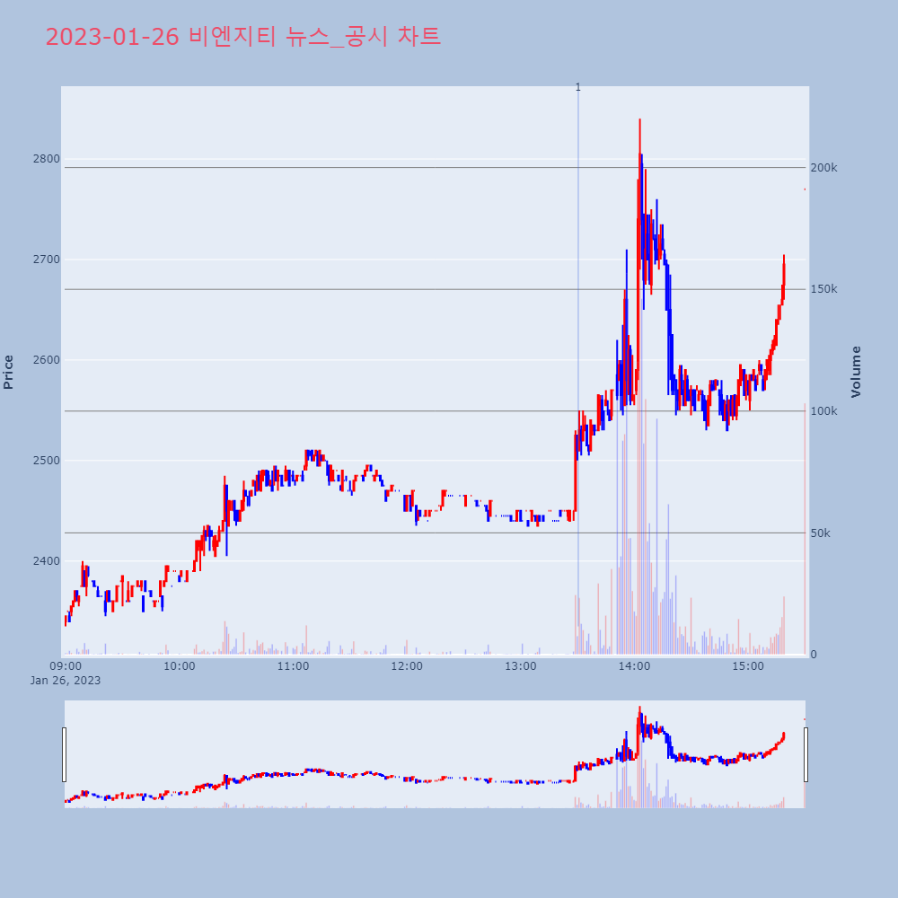 | 8 | 비플라이소프트, +9.93% VI 발동비플라이소프트가 VI가 발동했다. 전일 대비 9.93% | 조선경제 | 비플라이소프트 | 2023-01-26 11:02:20 |