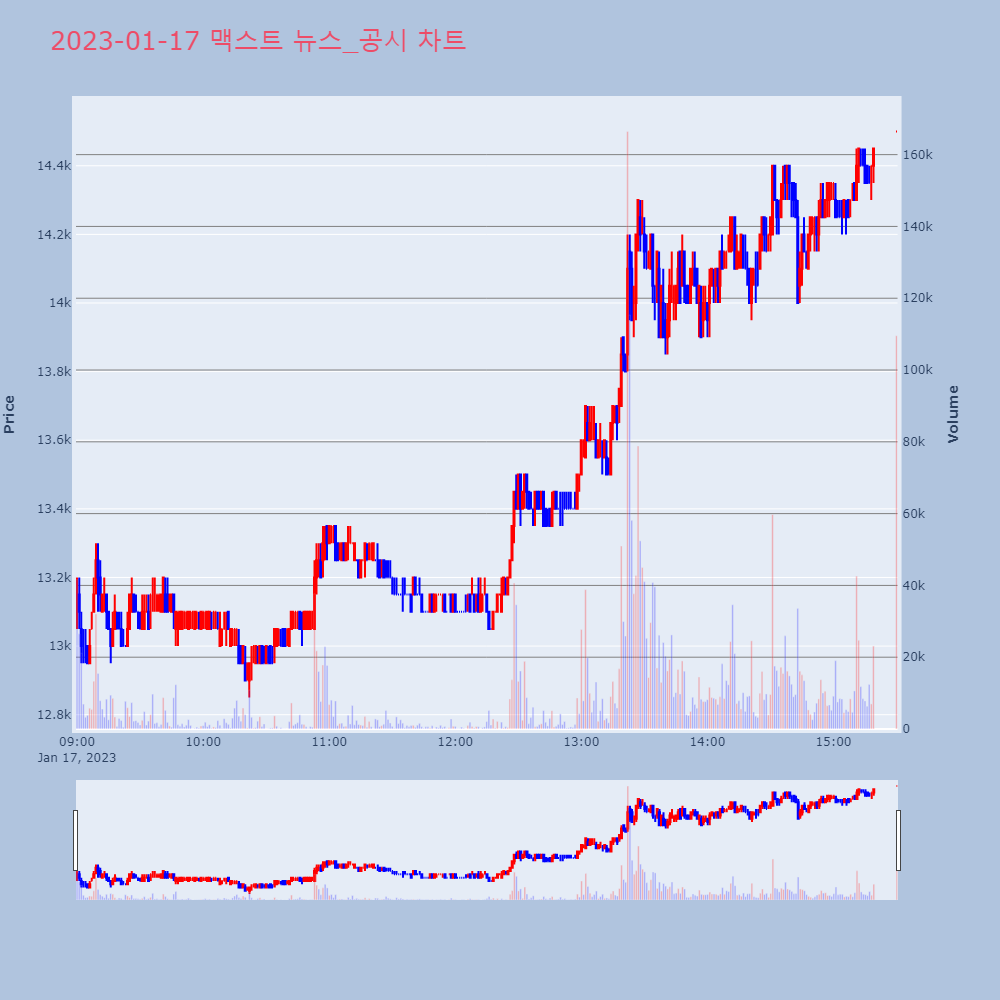| 9 | 비플라이소프트(148780) 급등세 기록중 +20.71% 기업개요 미디어 빅데이터 기반 서비스 플랫폼 업체. | 인포스탁 | 비플라이소프트 | 2023-01-26 11:14:09 |