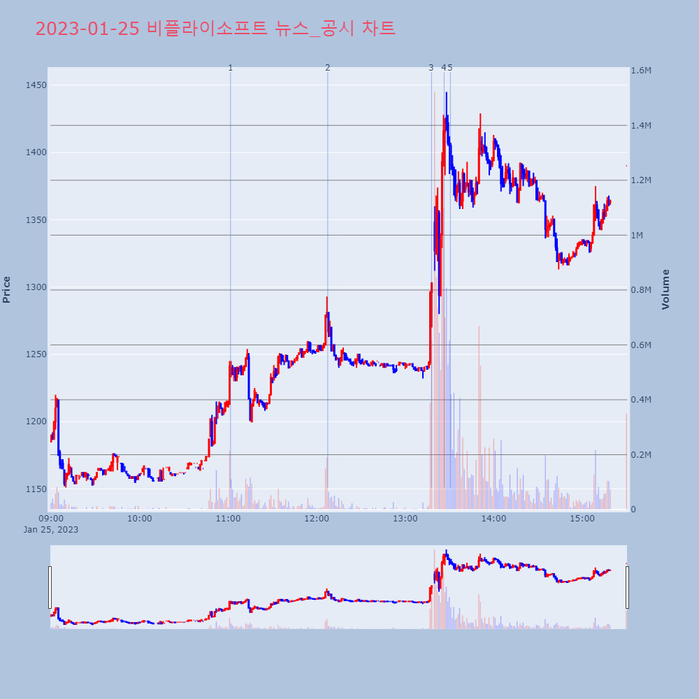 | 4 | 비플라이소프트(148780) 상승폭 확대 +19.31% 기업개요 미디어 빅데이터 기반 서비스 플랫폼 업체. | 인포스탁 | 비플라이소프트 | 2023-01-25 13:26:24 |