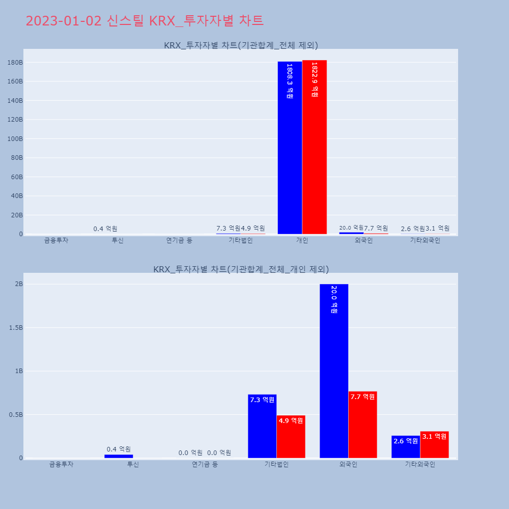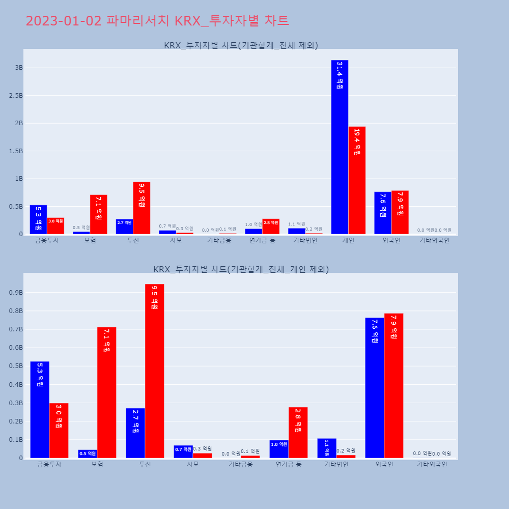 | 투자기관 | 거래량_매도 | 거래량_매수 | 거래량_순매수 | 거래대금_매도 | 거래대금_매수 | 거래대금_순매수 |