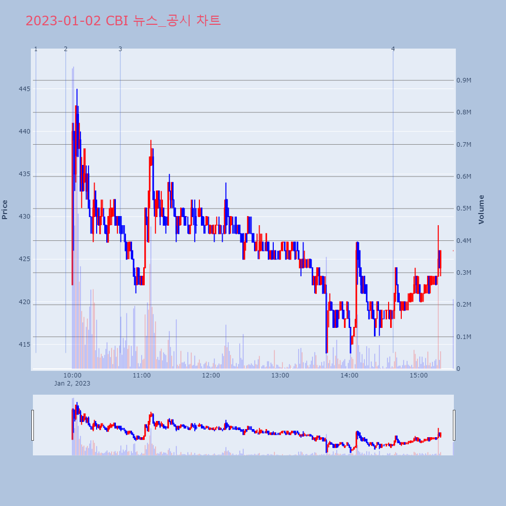 | 4 | 원익IPS, +8.28% VI 발동원익IPS가 VI가 발동했다. 전일 대비 8.28% 상 | 조선경제 | 원익IPS | 2023-01-04 13:45:23 |