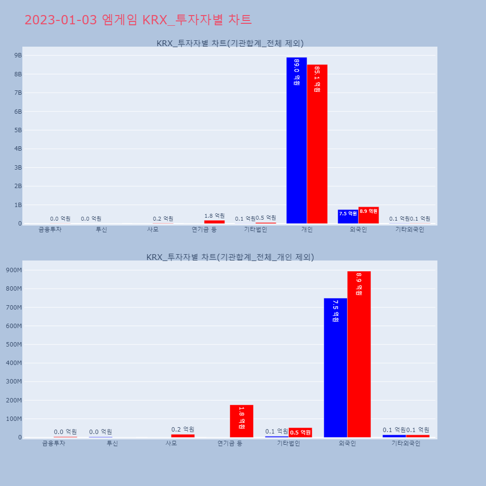 | 외국인 | 136,542 | 111,377 | -25,165 | 3,732,271,800 | 3,016,334,950 | -715,936,850 |