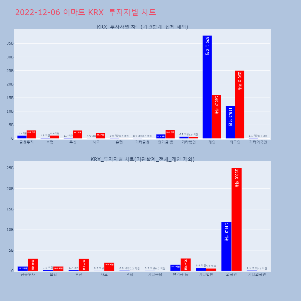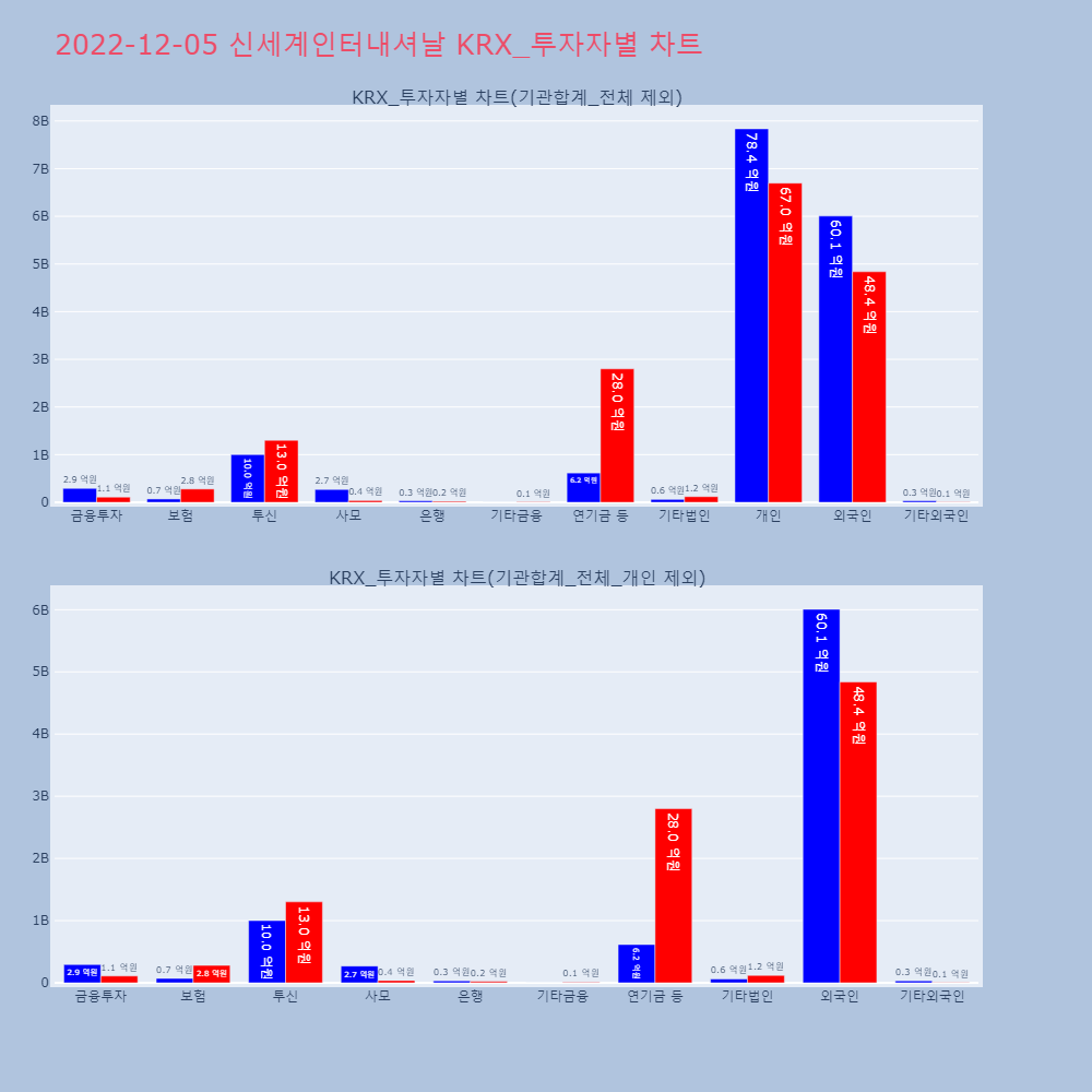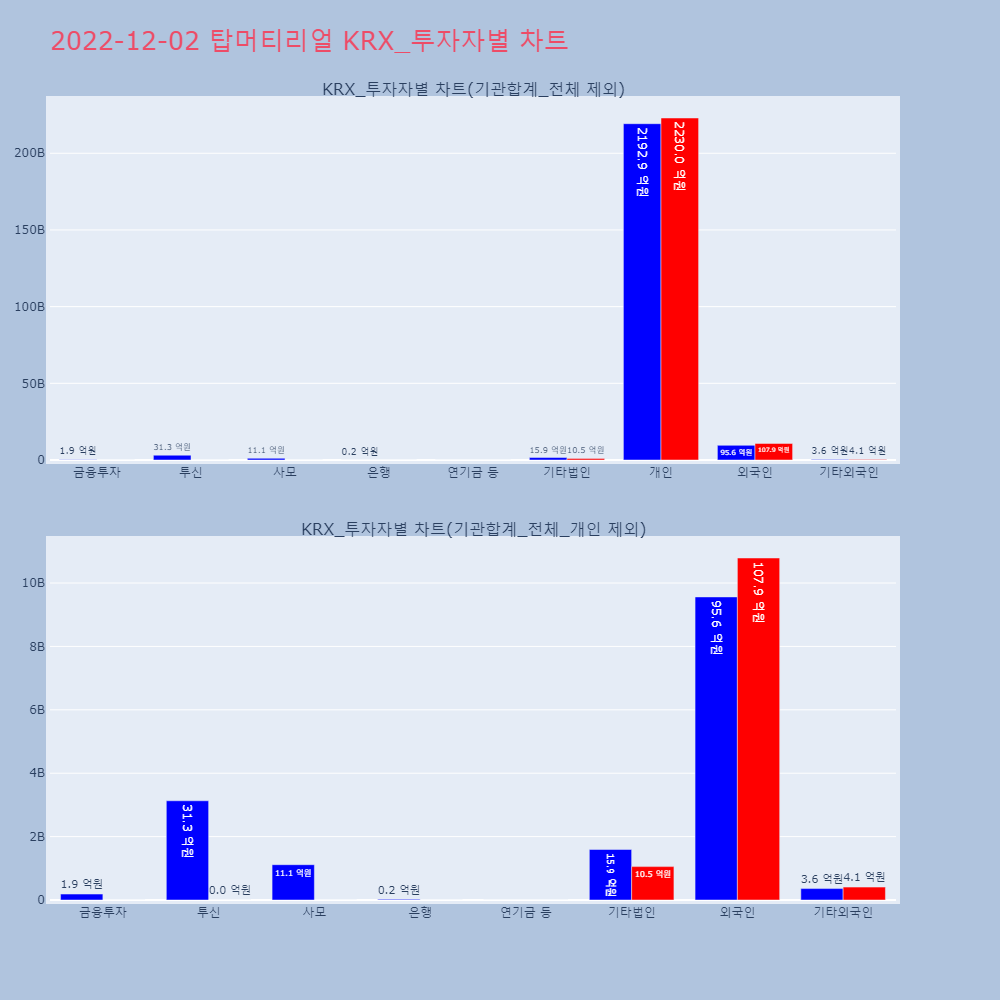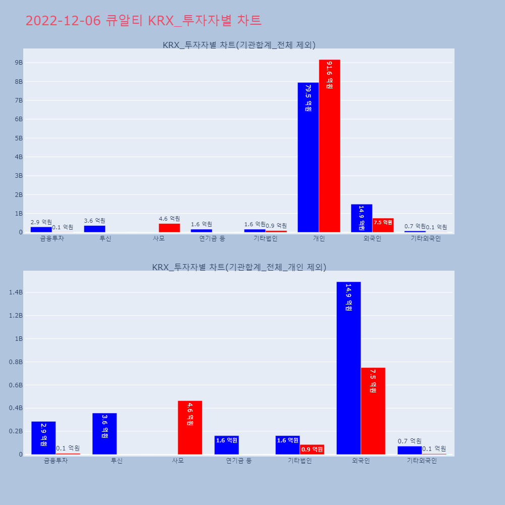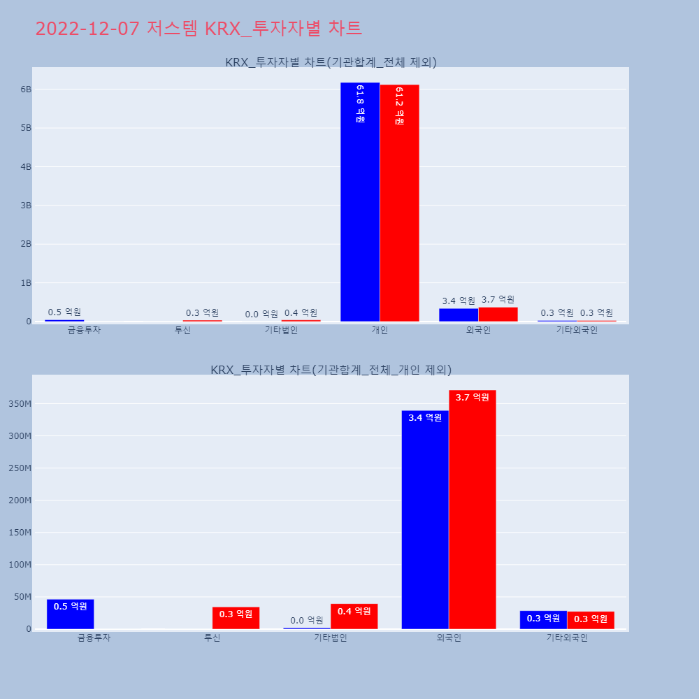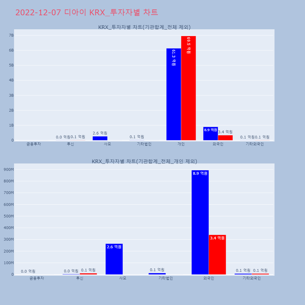 | 투자기관 | 거래량_매도 | 거래량_매수 | 거래량_순매수 | 거래대금_매도 | 거래대금_매수 | 거래대금_순매수 |