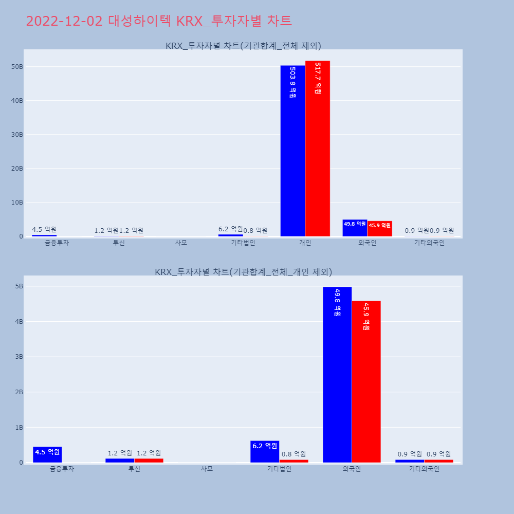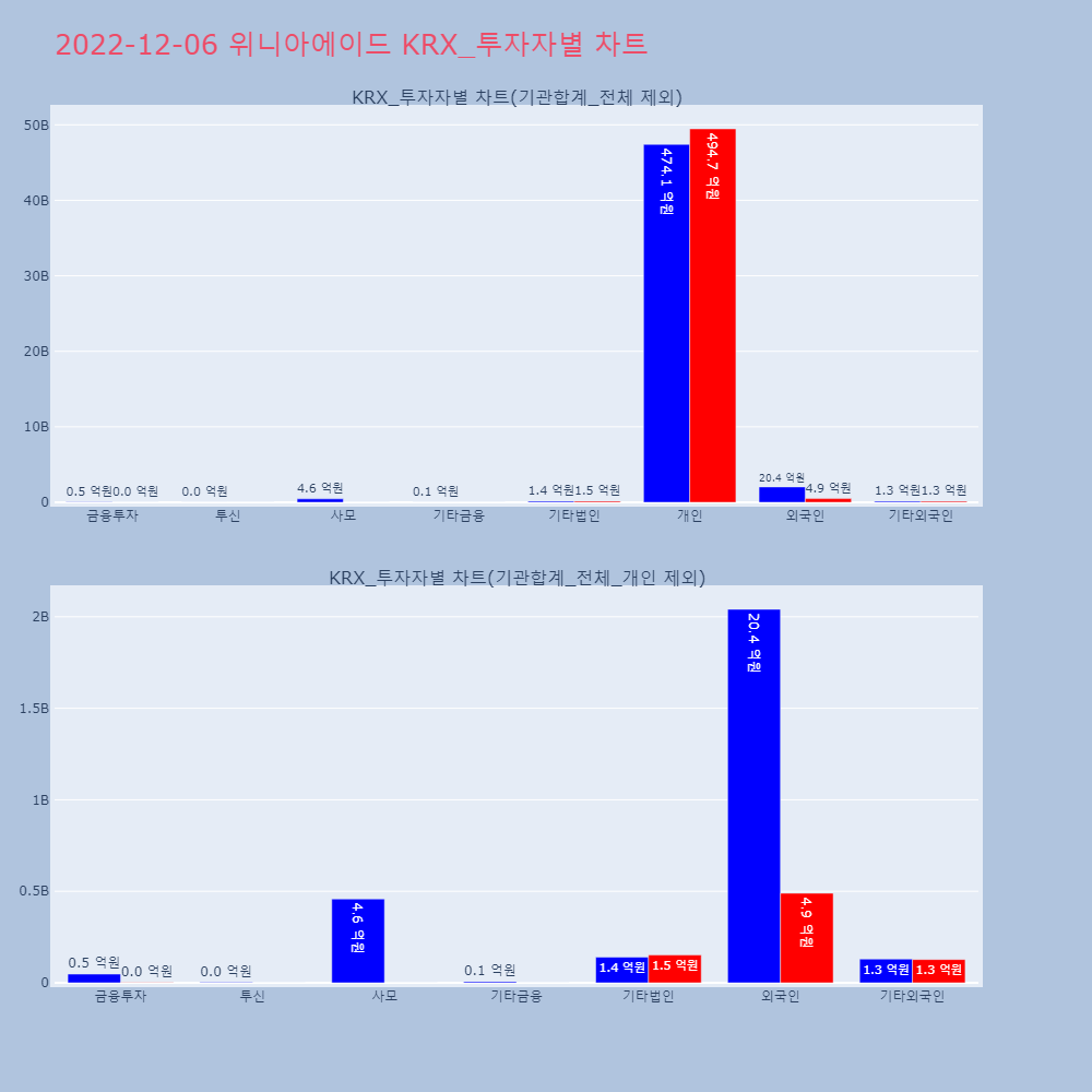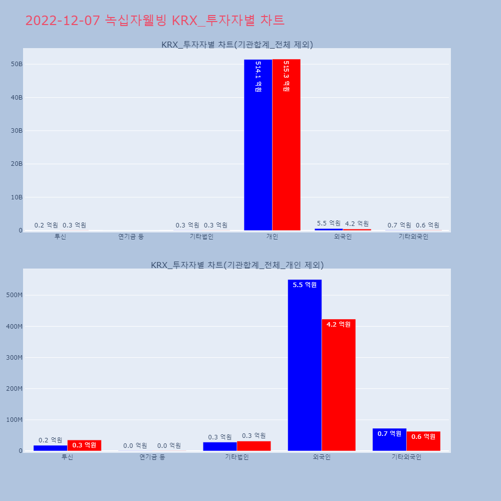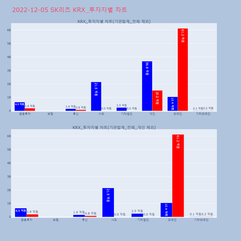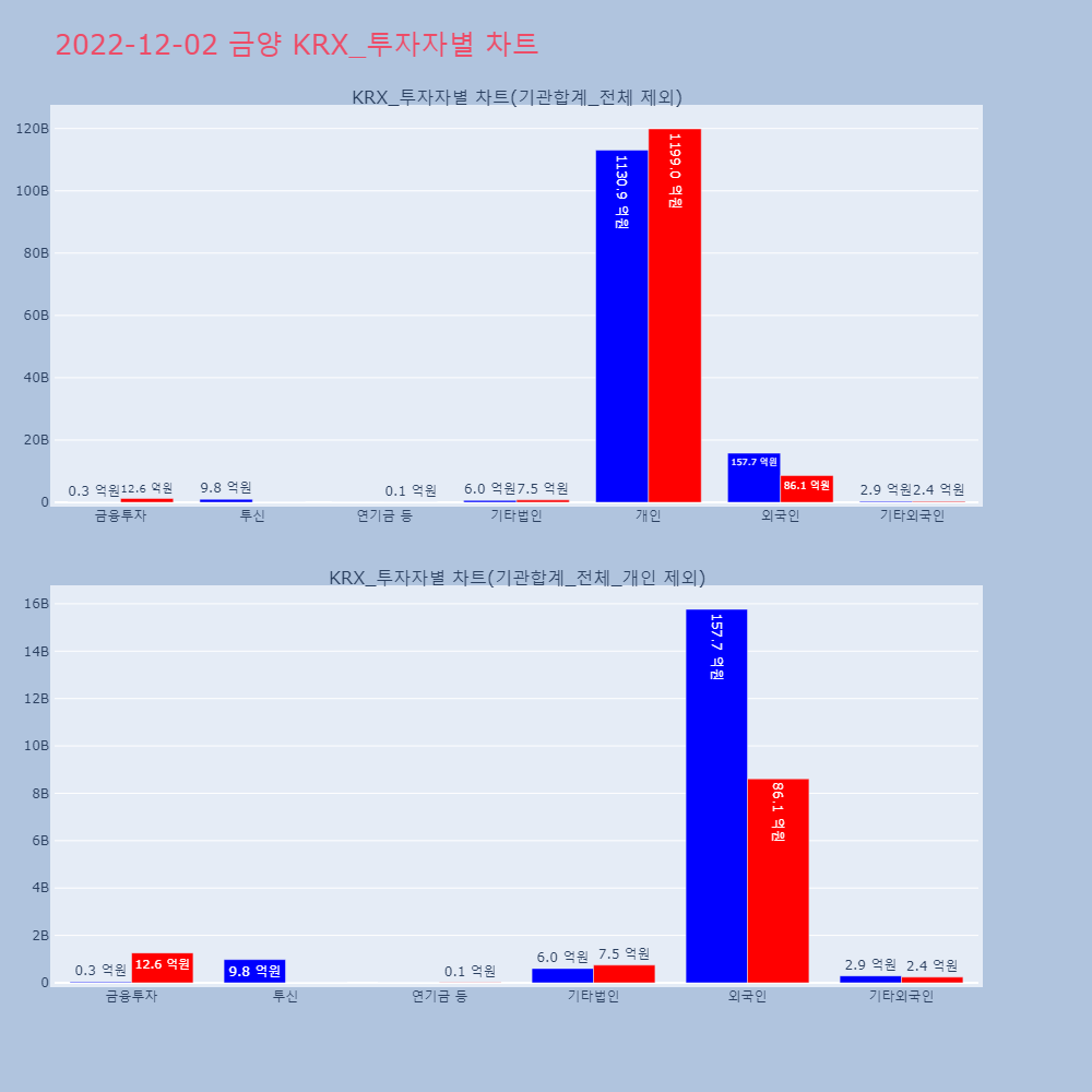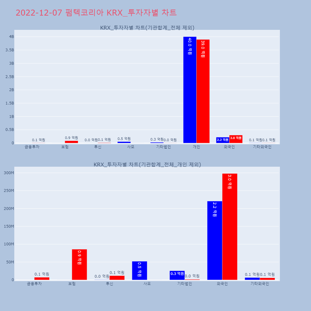 | 투자기관 | 거래량_매도 | 거래량_매수 | 거래량_순매수 | 거래대금_매도 | 거래대금_매수 | 거래대금_순매수 |