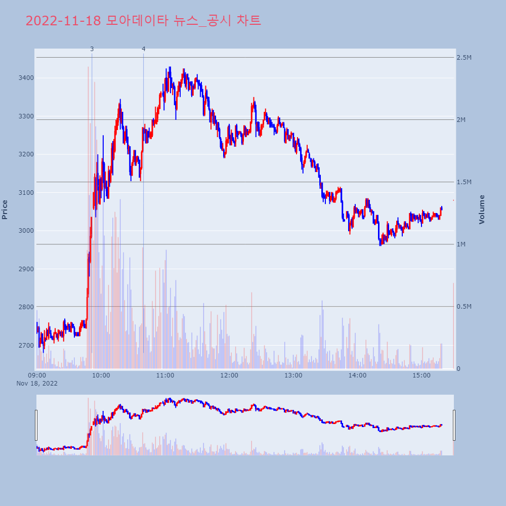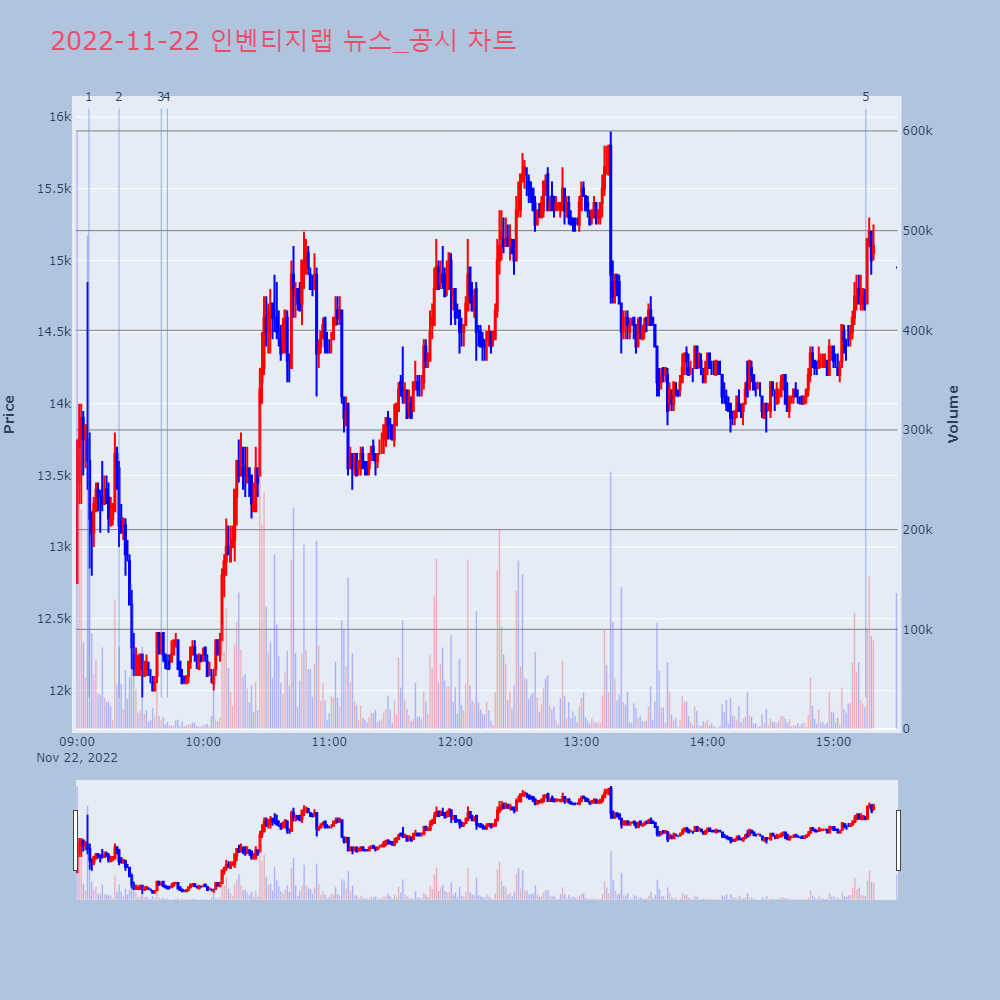 | 2 | [특징주] 인벤티지랩, 코스닥 입성 첫날 3% 상승세…공모가 상회[이투데이/박민규 기자(pmk8989@etoday.co | 이투데이 | 인벤티지랩 | 2022-11-22 09:19:59 |