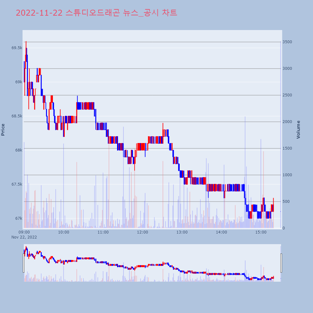 | 1 | [장중수급포착] 스튜디오드래곤, 외국인/기관 동시 순매수… 주가 +1.15% [서울=뉴스핌] 로보뉴스 = 21일 10시 15분 현재 | 뉴스핌 | 스튜디오드래곤 | 2022-11-21 10:17:30 |