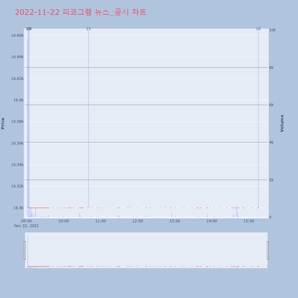 | 6 | [fnRASSI]피코그램, 인벤티지랩 등 17종목 52주 신고가 경신 22일 피코그램(376180), 인벤티지랩(389470 | 파이낸셜 | 대창단조 | 2022-11-22 15:51:36 |