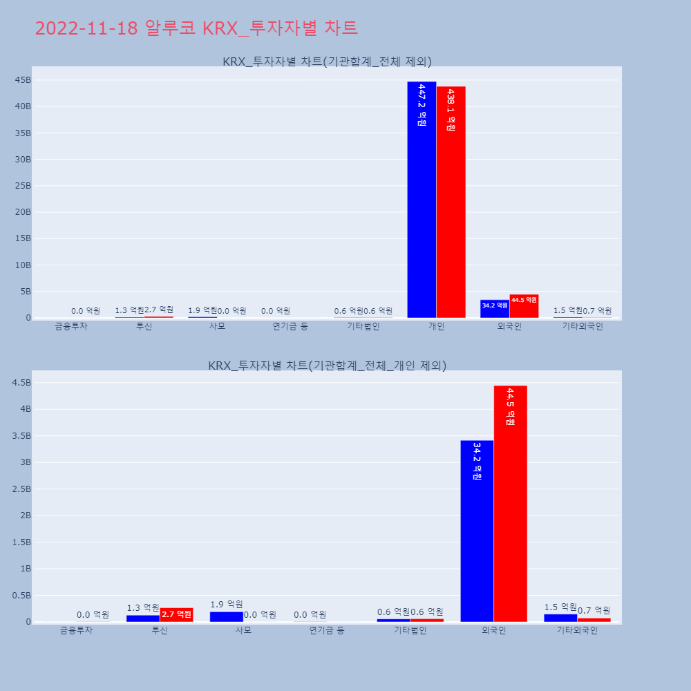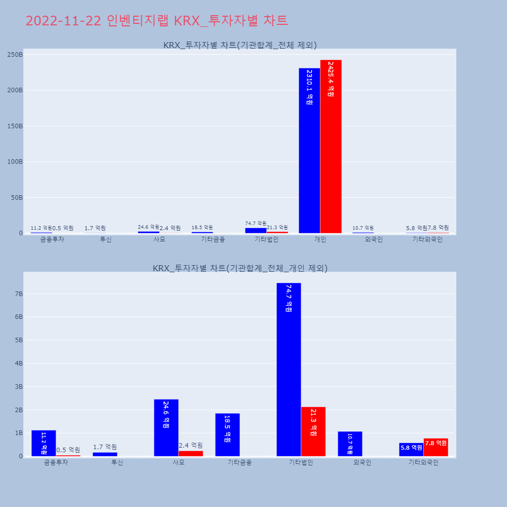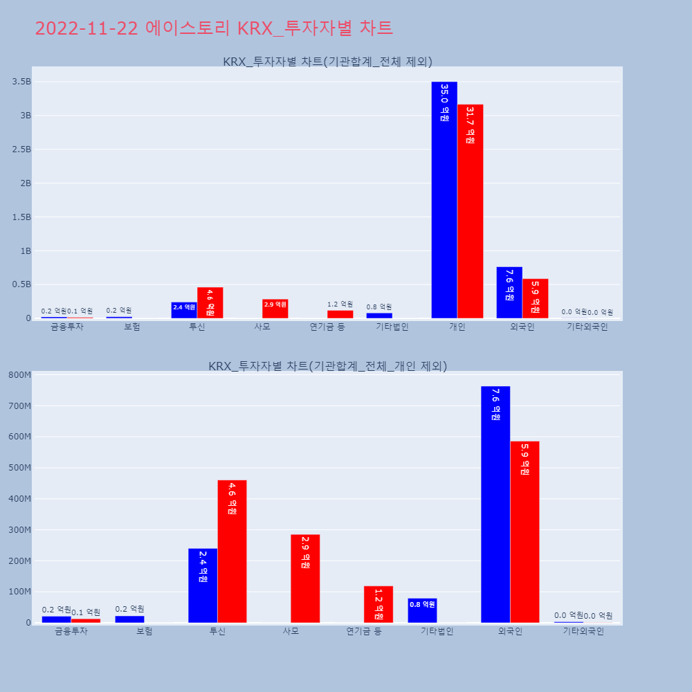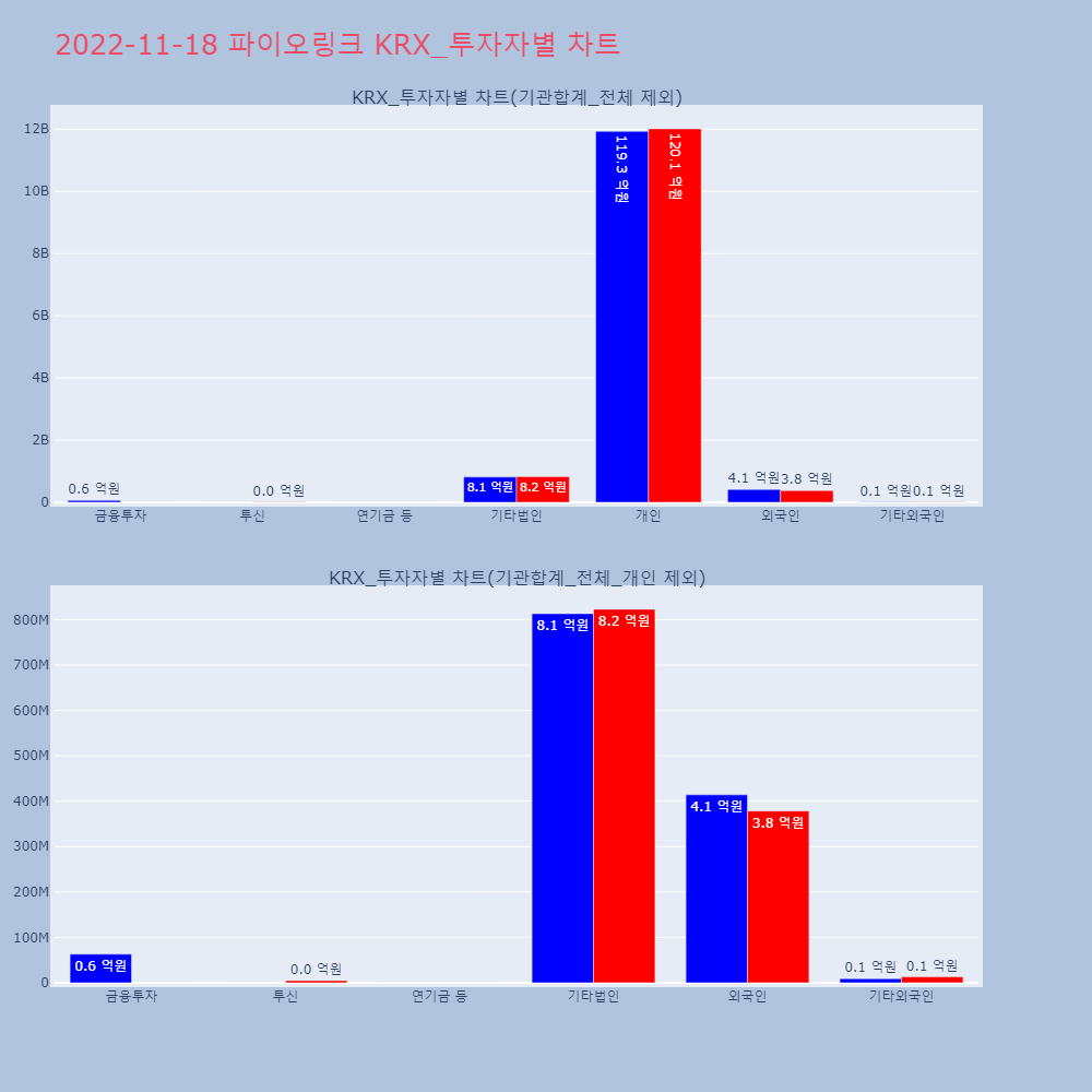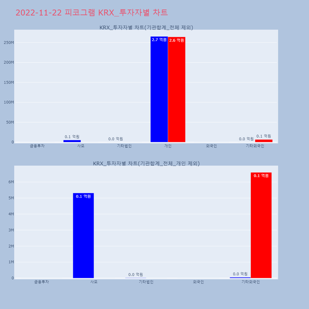 | 투자기관 | 거래량_매도 | 거래량_매수 | 거래량_순매수 | 거래대금_매도 | 거래대금_매수 | 거래대금_순매수 |