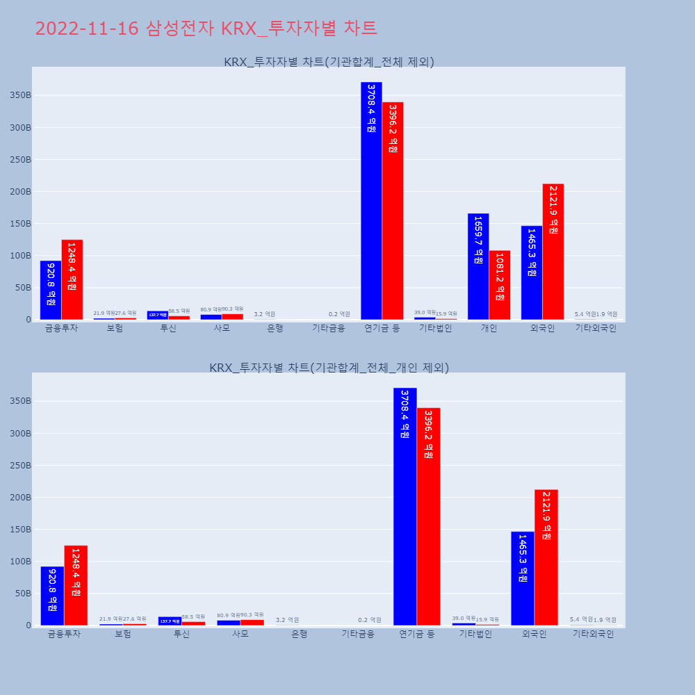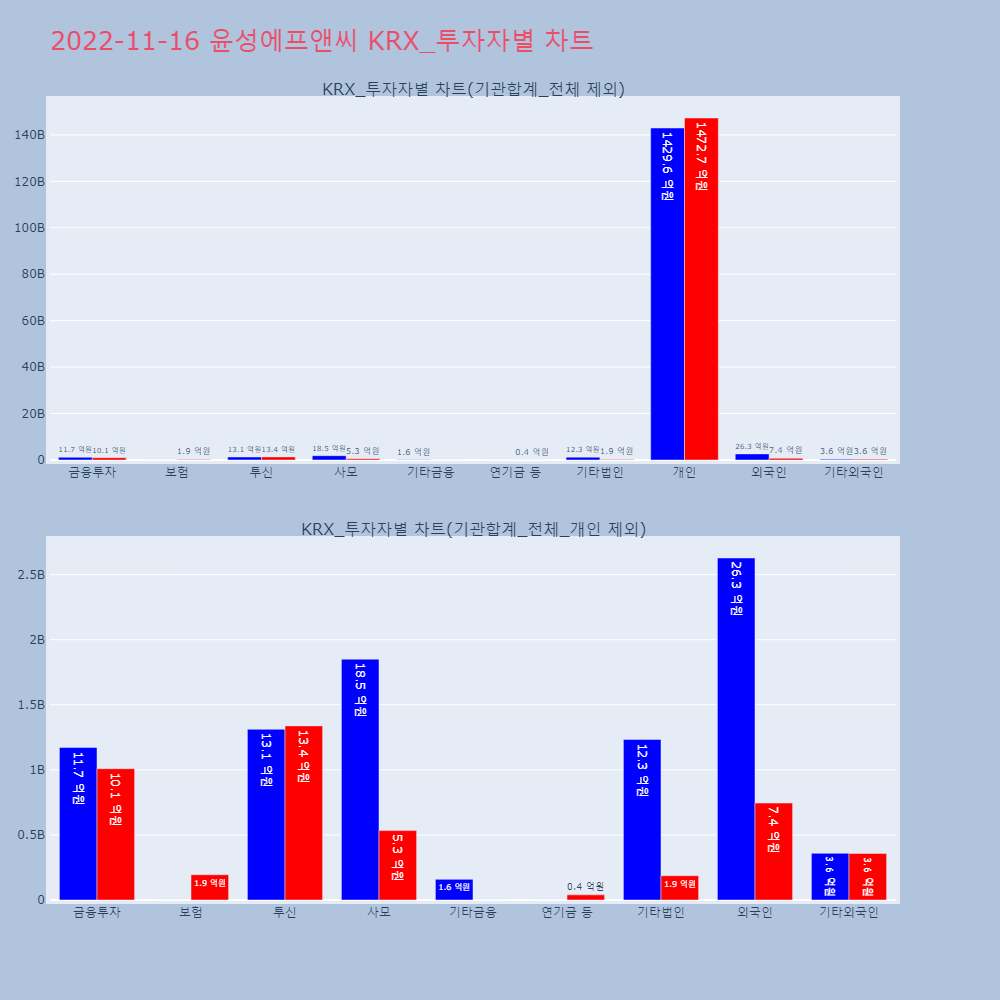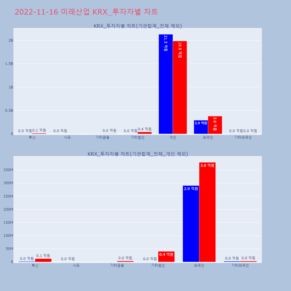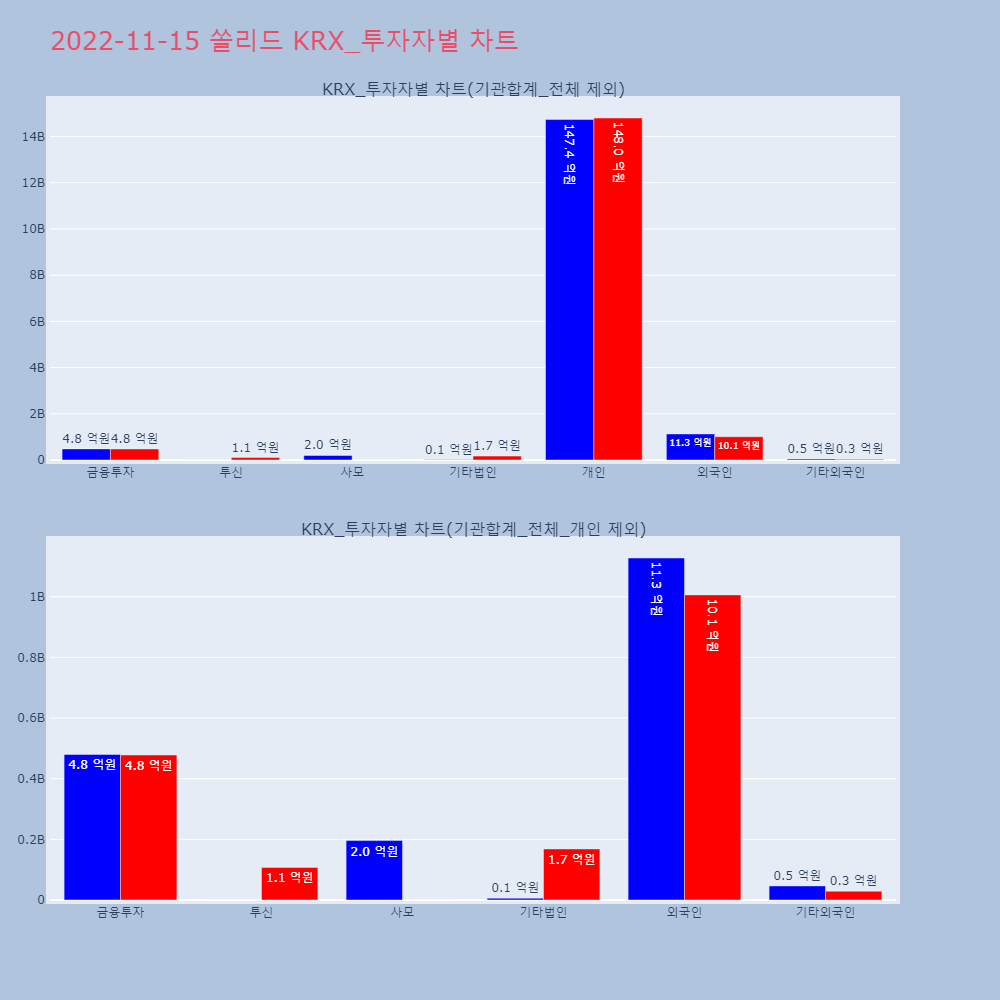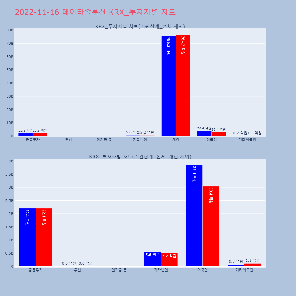 | 투자기관 | 거래량_매도 | 거래량_매수 | 거래량_순매수 | 거래대금_매도 | 거래대금_매수 | 거래대금_순매수 |