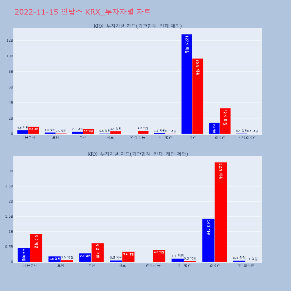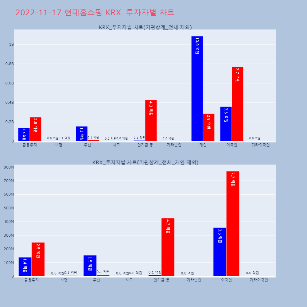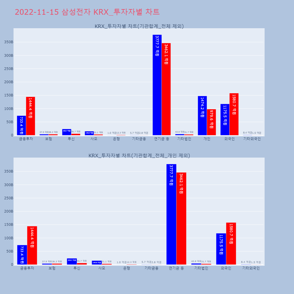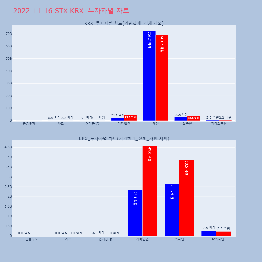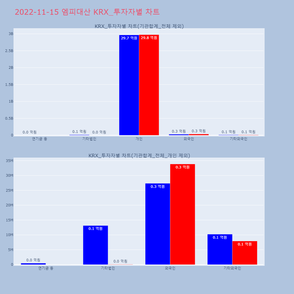 | 투자기관 | 거래량_매도 | 거래량_매수 | 거래량_순매수 | 거래대금_매도 | 거래대금_매수 | 거래대금_순매수 |