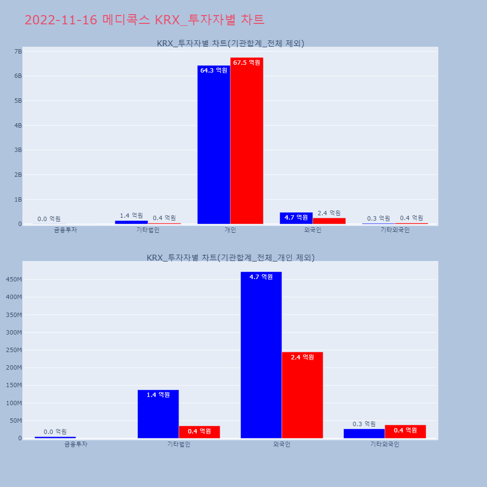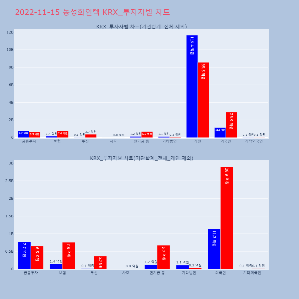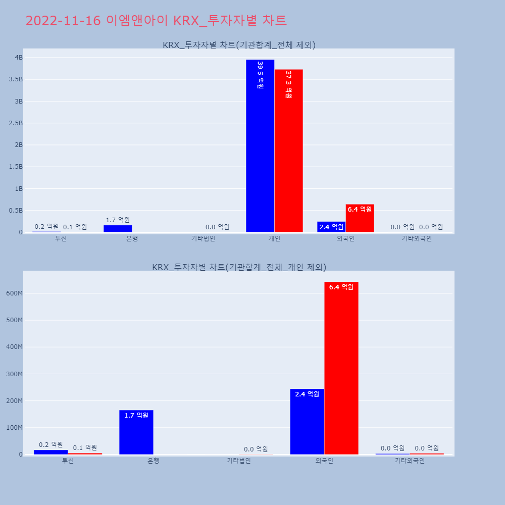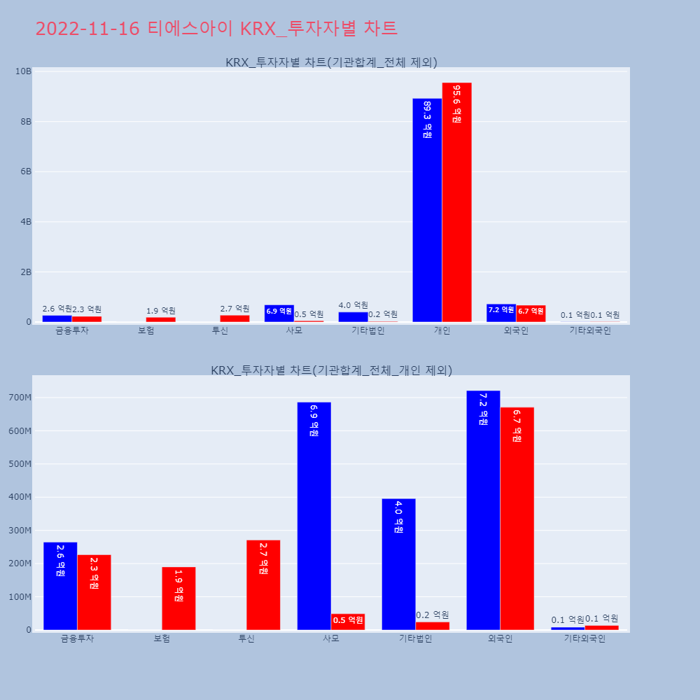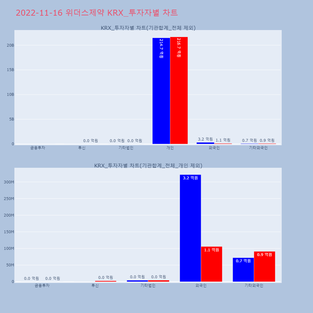 | 투자기관 | 거래량_매도 | 거래량_매수 | 거래량_순매수 | 거래대금_매도 | 거래대금_매수 | 거래대금_순매수 |