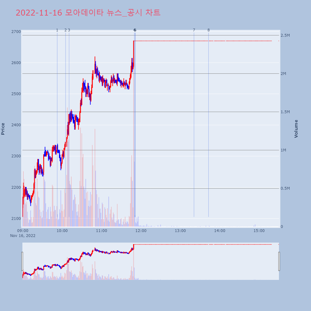 | 3 | [특징주] 대아티아이, 한국 '8.6조 규모' 인니 전철 확장 사업 참여에 강세제목 : [특징주] 대아티아이, 한국 '8.6조 규모' | 인포스탁 | 대아티아이 | 2022-11-17 13:23:07 |