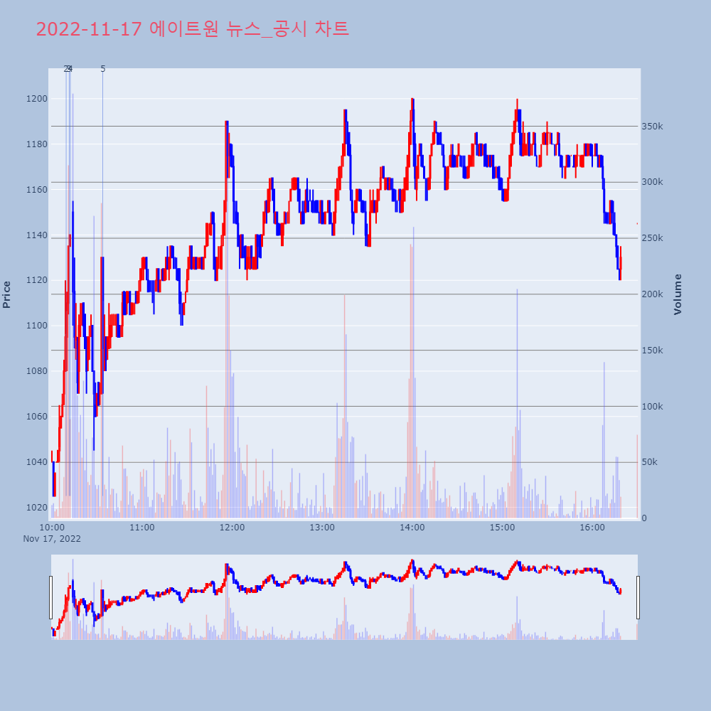 | 4 | 대아티아이, +11.01% VI 발동대아티아이가 VI가 발동했다. 전일 대비 11.01% | 조선경제 | 대아티아이 | 2022-11-17 13:24:14 |