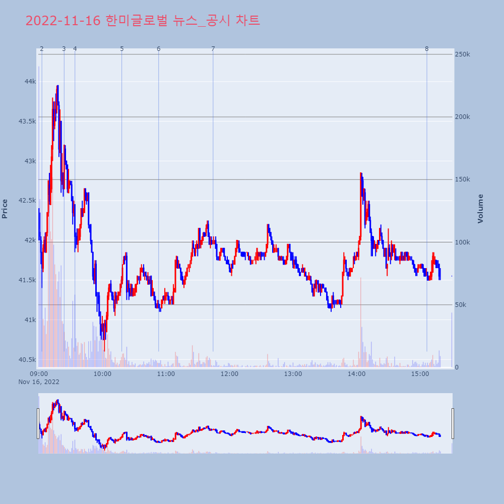 | 8 | 한미글로벌, -10.59% VI 발동한미글로벌이 VI가 발동했다. 전일 대비 10.59% | 조선경제 | 한미글로벌 | 2022-11-17 13:56:42 |