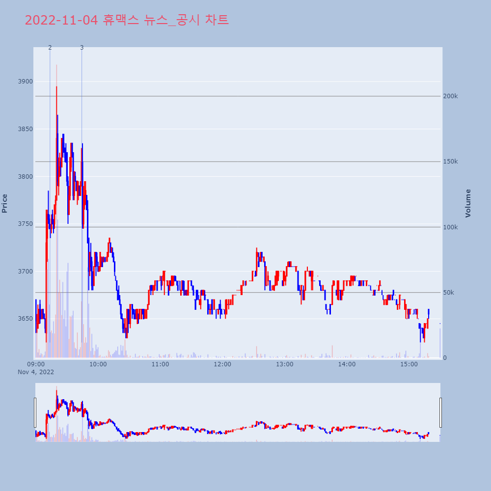 | 보험 | 3 | 3,676 | 3,673 | 194,100 | 238,860,900 | 238,666,800 |
