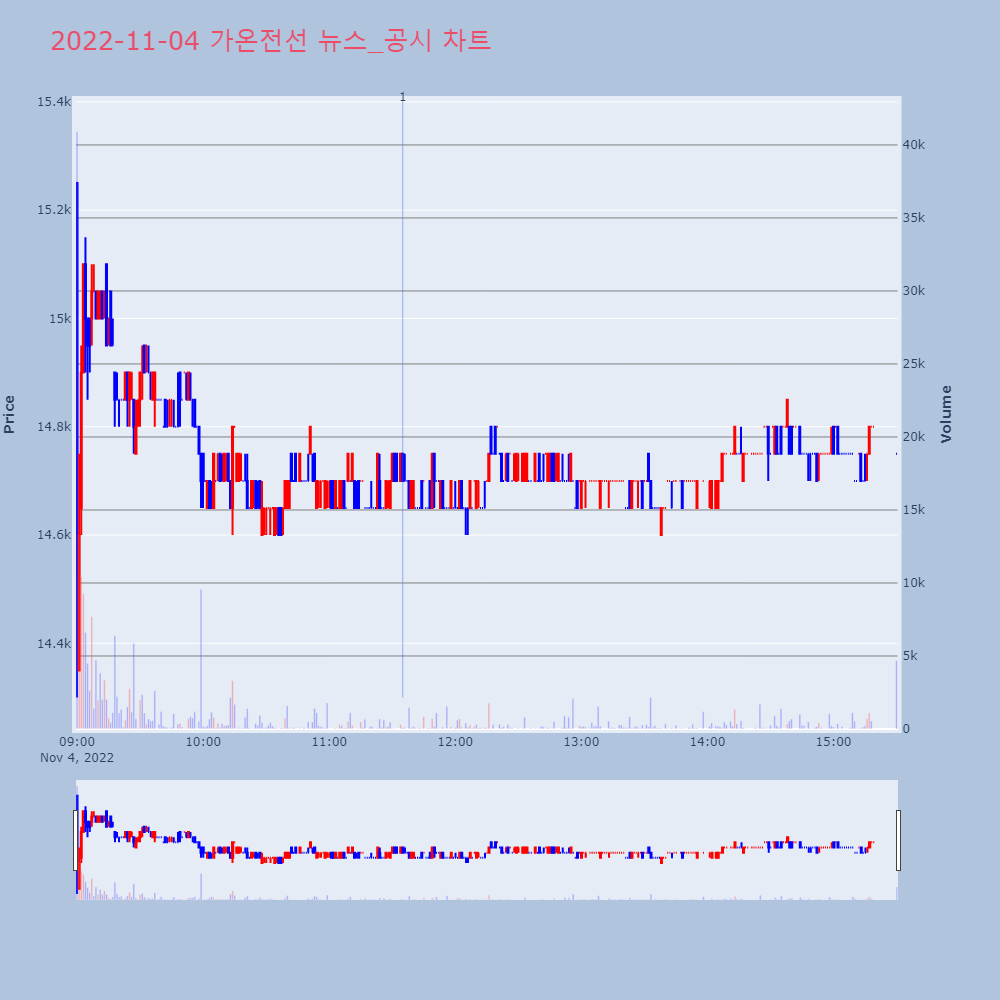| 3 | 한전기술, +7.56% VI 발동한전기술이 VI가 발동했다. 전일 대비 7.56% 상승 | 조선경제 | 한전기술 | 2022-11-03 09:18:43 |