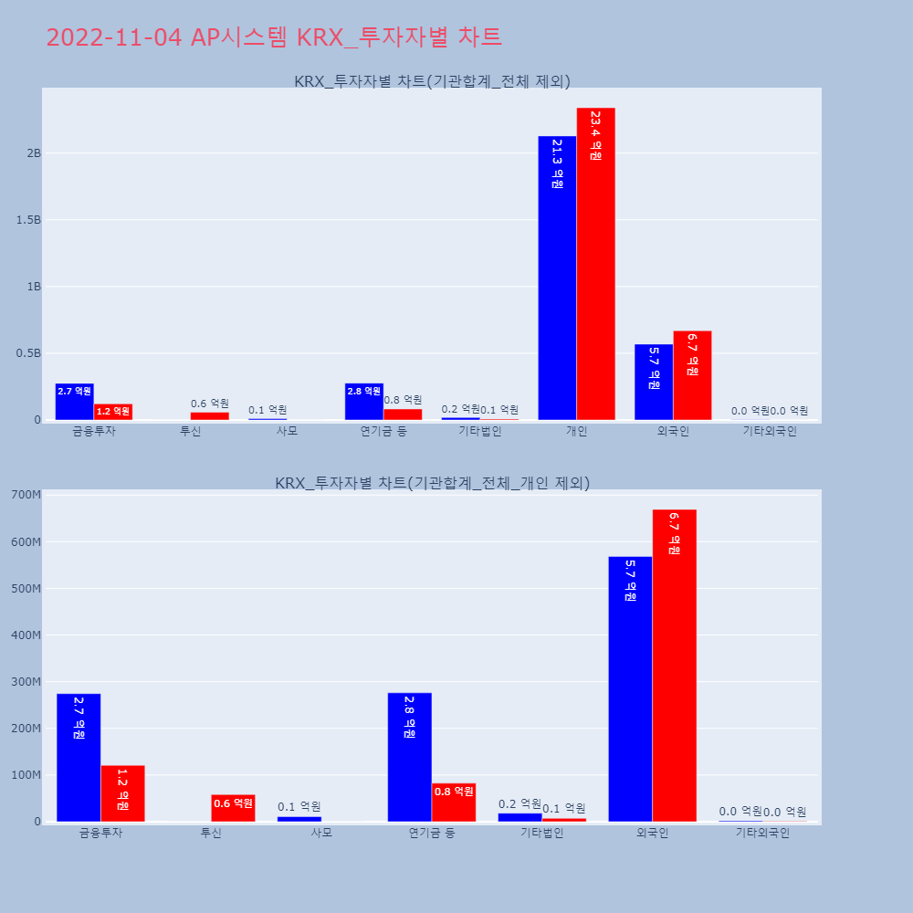 | 투자기관 | 거래량_매도 | 거래량_매수 | 거래량_순매수 | 거래대금_매도 | 거래대금_매수 | 거래대금_순매수 |