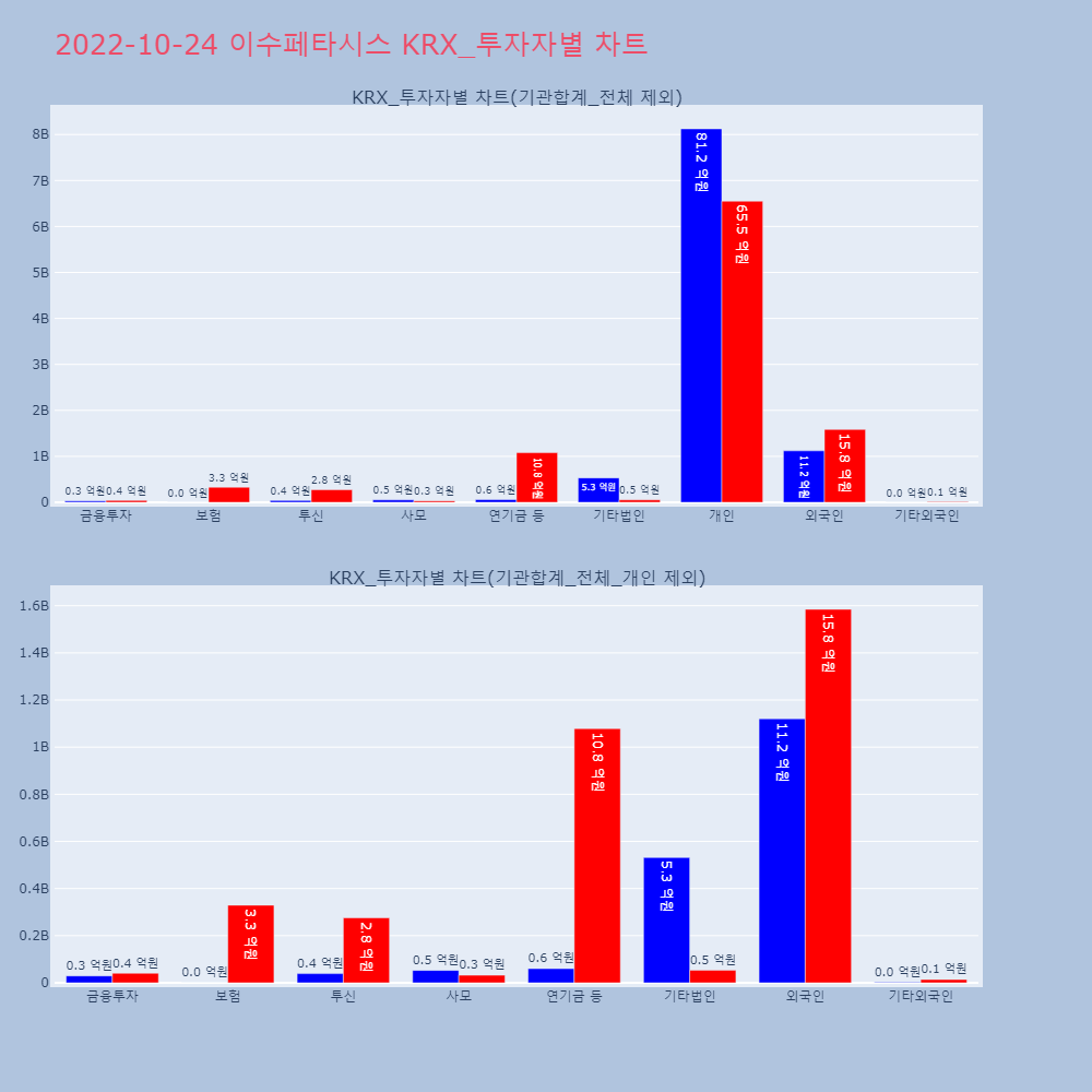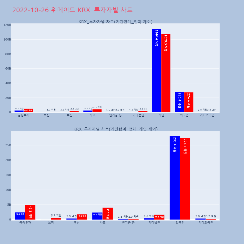 | 사모 | 65,279 | 5,310 | -59,969 | 10,529,020,000 | 862,754,500 | -9,666,265,500 |