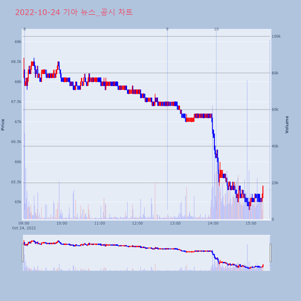 | 43 | '장사 잘한' 기아, 매출은 날고 영업이익은 떨어진 이유 보니 제목 : '장사 잘한' 기아, 매출은 날고 영업이익은 | 인포스탁 | 기아 | 2022-10-26 06:31:12 |