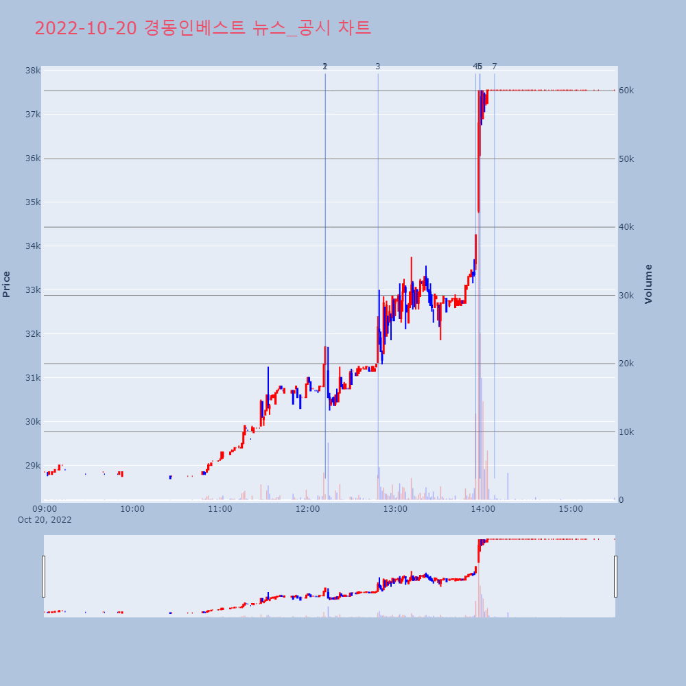 | 6 | [특징주] 경동인베스트, 자회사 조광권 취득에 3거래일째 상한가[특징주] 경동인베스트, 자회사 조광권 취득에 3거래일 | 연합뉴스 | 경동인베스트 | 2022-10-24 09:24:03 |