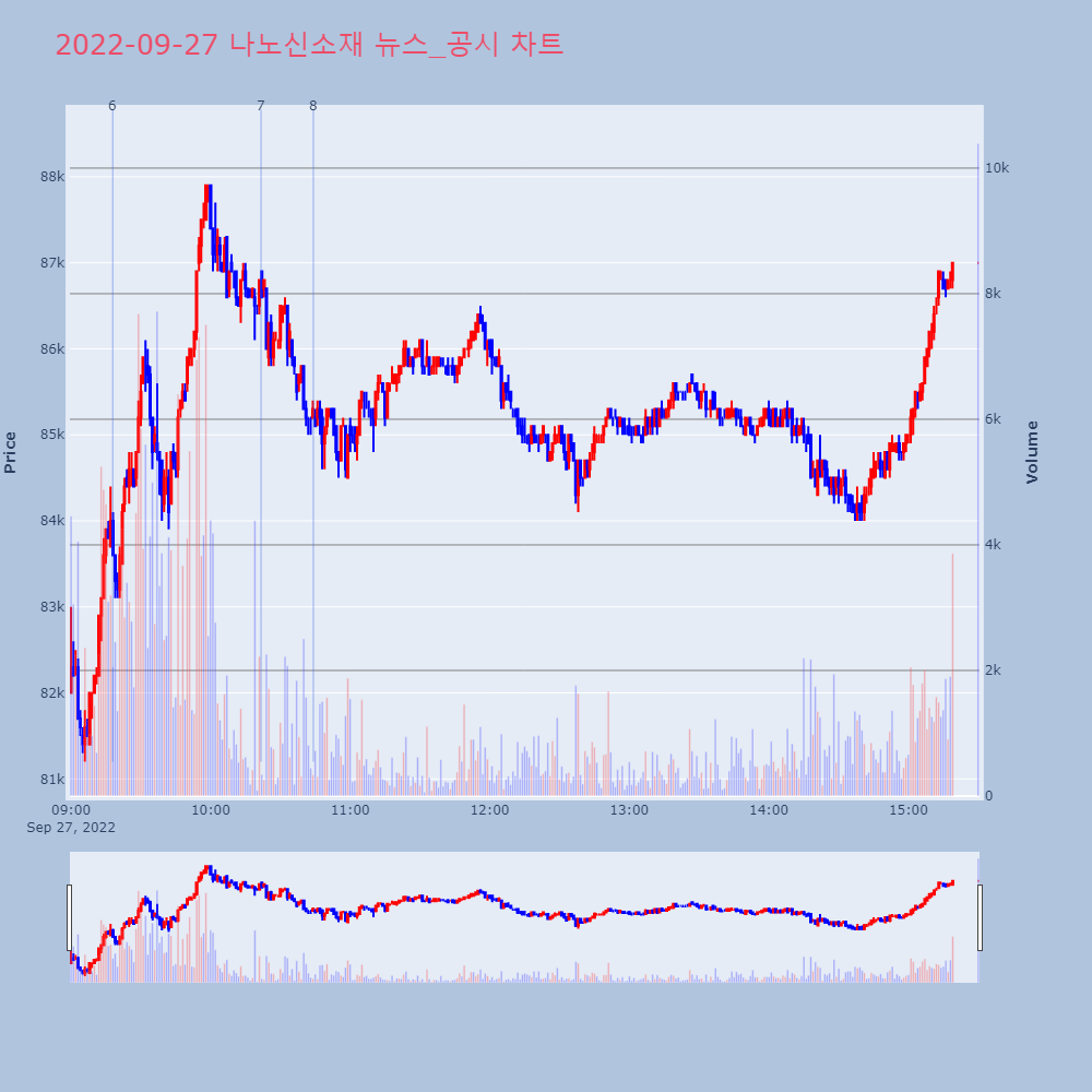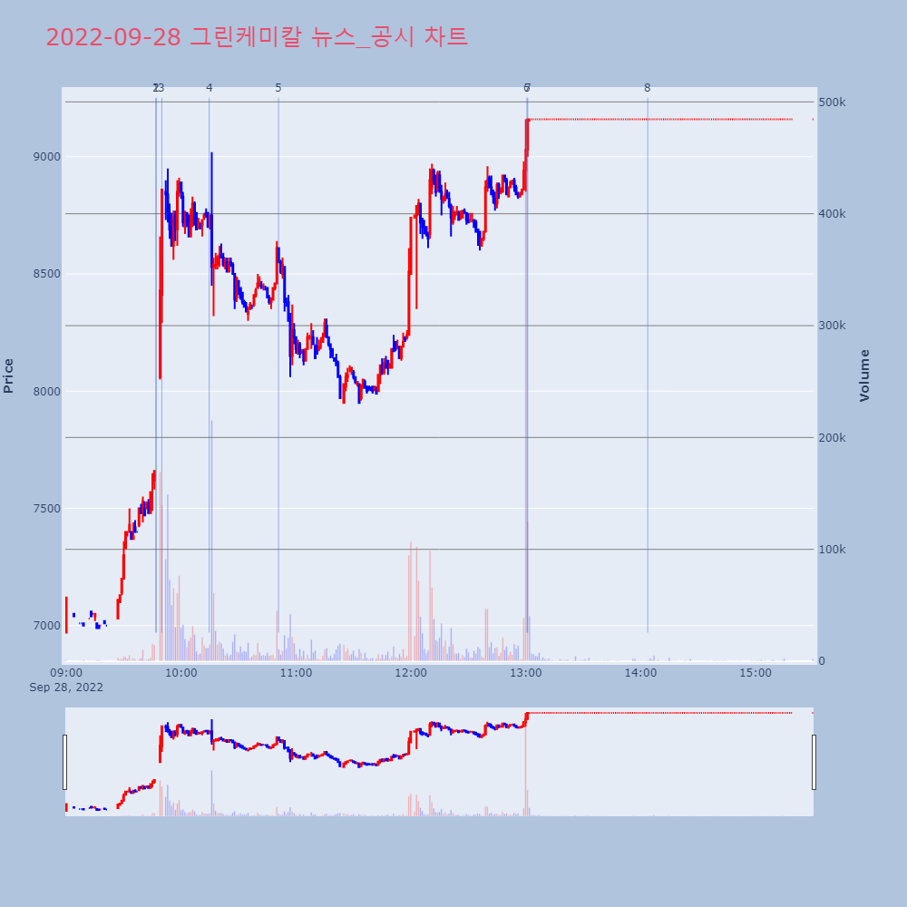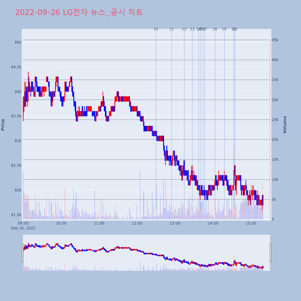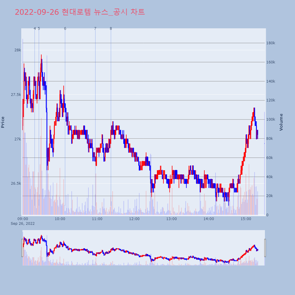 | 9 | [특징주] 롯데케미칼, 일진머티리얼즈 인수 보도에 8% 급락[특징주] 롯데케미칼, 일진머티리얼즈 인수 보도에 8% | 연합뉴스 | 롯데케미칼 | 2022-09-28 09:24:36 |