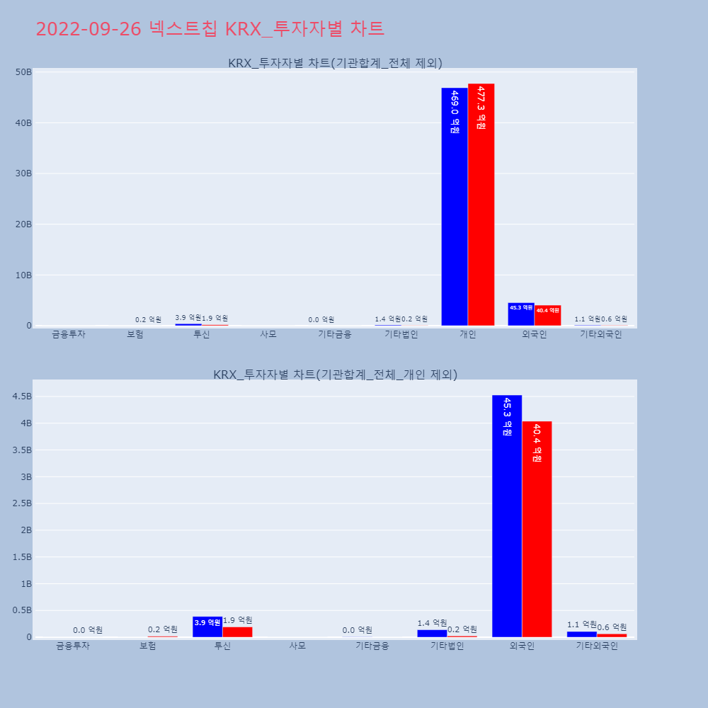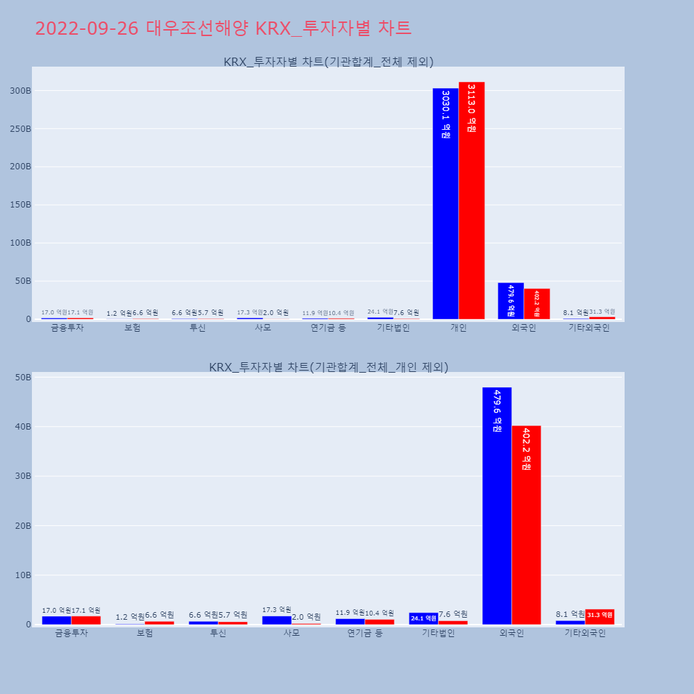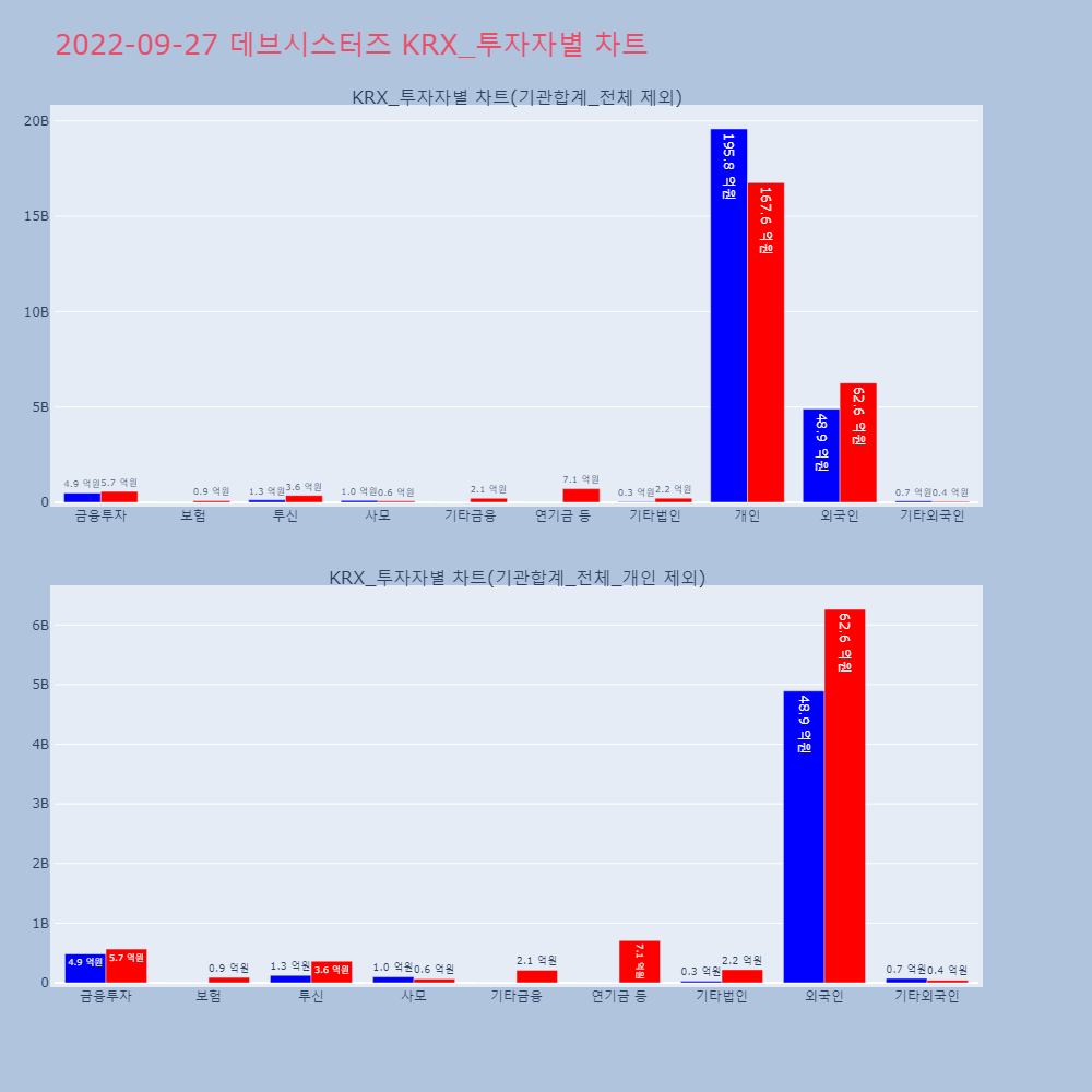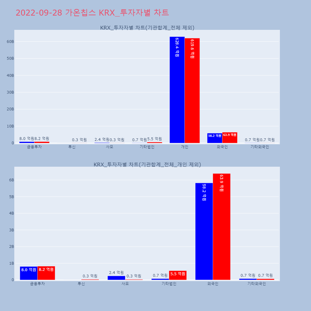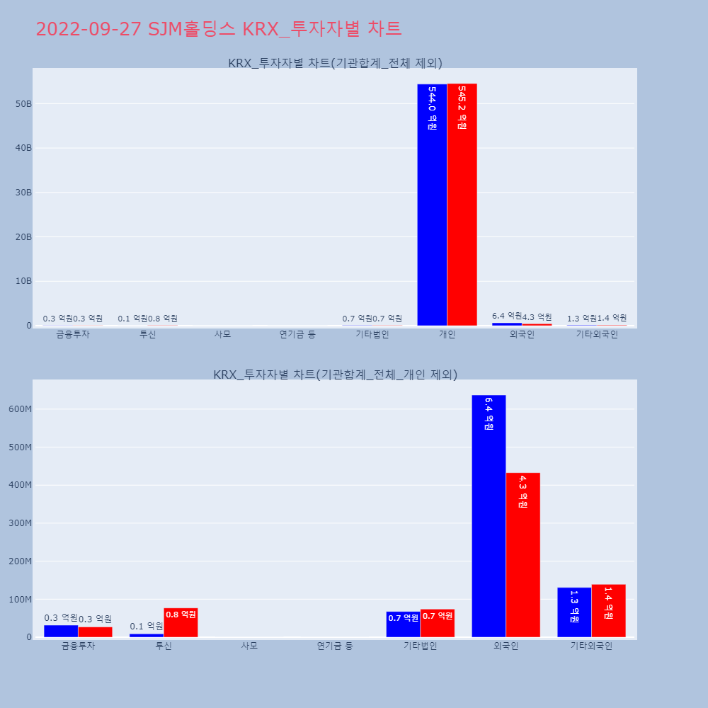 | 투자기관 | 거래량_매도 | 거래량_매수 | 거래량_순매수 | 거래대금_매도 | 거래대금_매수 | 거래대금_순매수 |