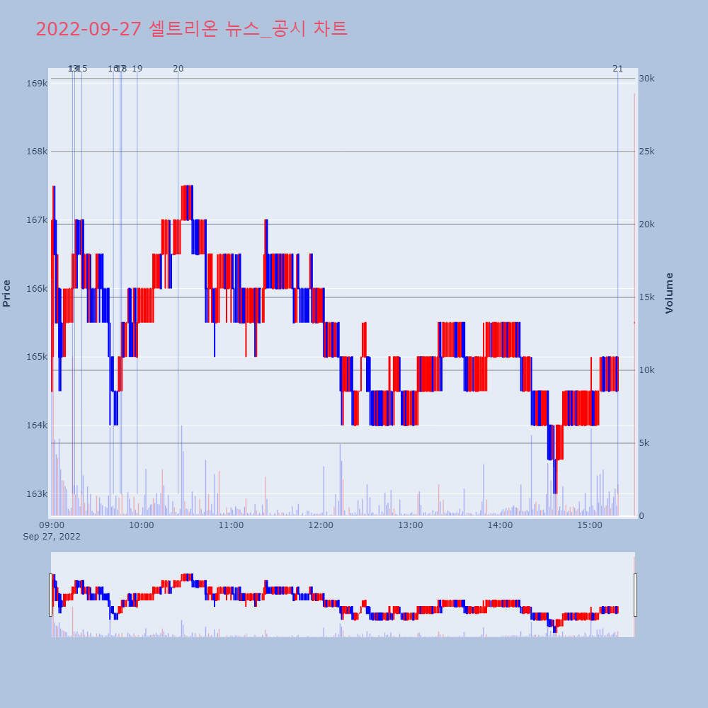 | 18 | [오늘의 주요공시] 셀트리온ㆍ한화ㆍ일진머티리얼즈 등[이투데이/김예슬 기자(viajeporlune@etod | 이투데이 | 셀트리온 | 2022-09-28 18:01:00 |