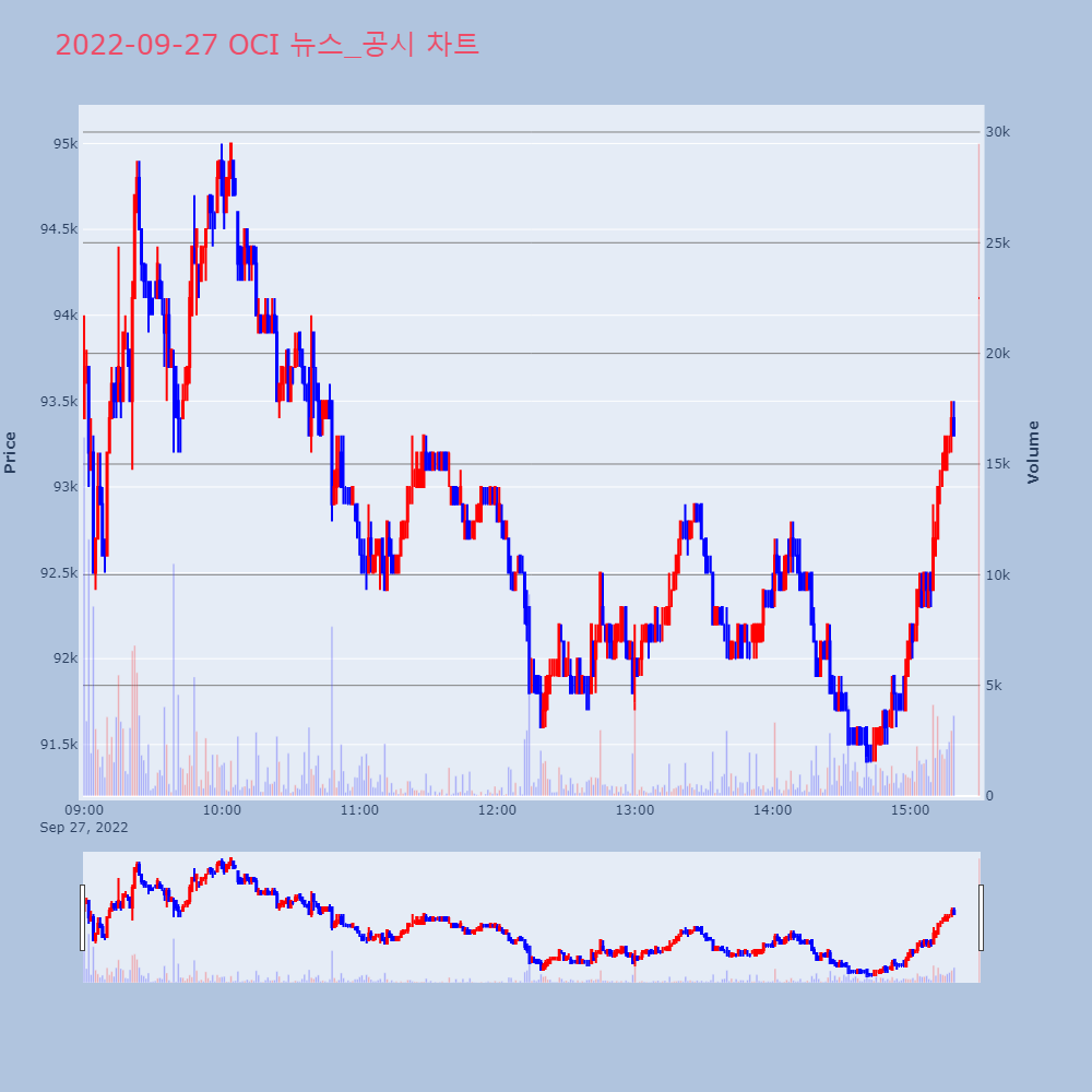 | 12 | [특징주]롯데케미칼, 일진머티리얼즈 인수 보도에 5%대 ↓[아시아경제 이명환 기자] 롯데케미칼이 28일 장 초 | 아시아경제 | 롯데케미칼 | 2022-09-28 09:38:30 |