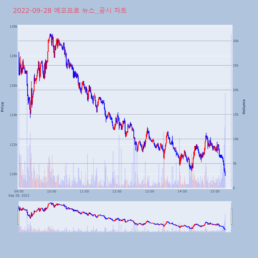 | 3 | [코스닥 공시] 에코프로비엠 / 라온피플 / KCC건설 ◇에코프로비엠=에코프로글로벌 800억원 주주 배정 유상 | 매일경제 | 에코프로비엠 | 2022-09-27 17:48:39 |