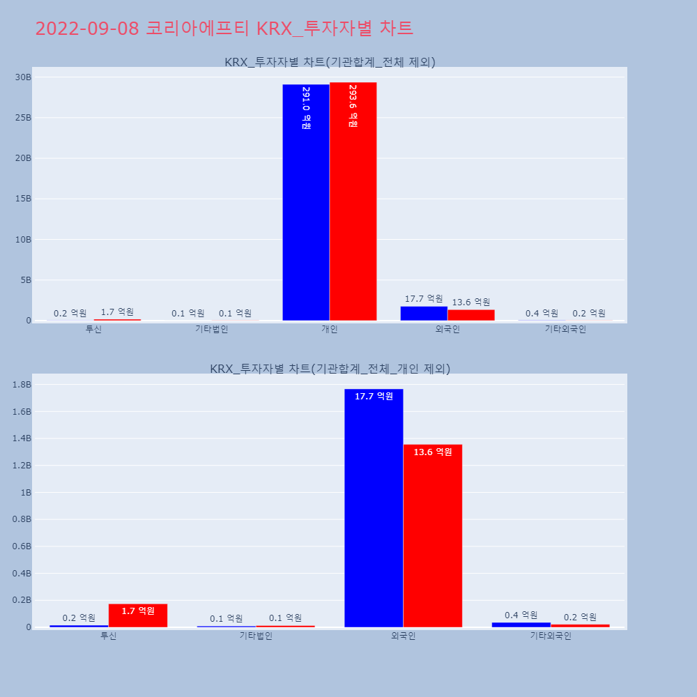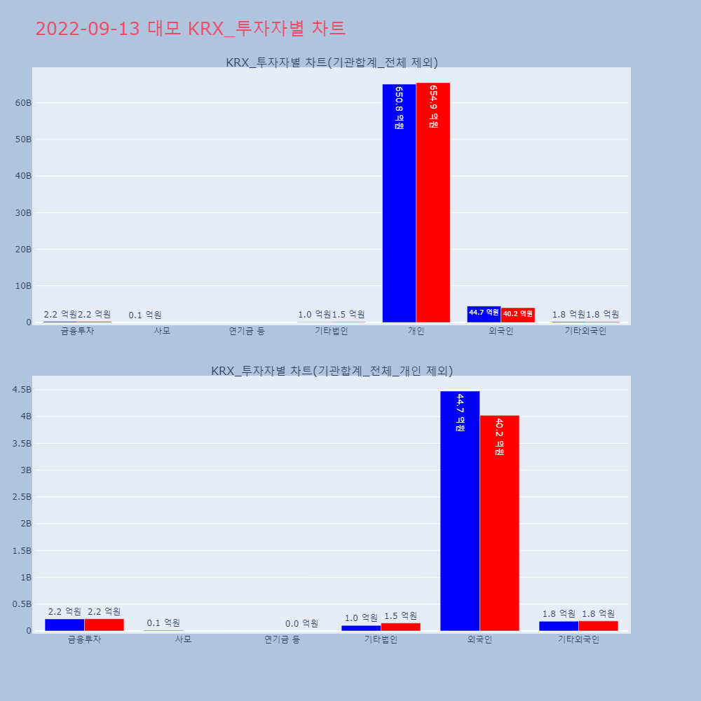 | 투자기관 | 거래량_매도 | 거래량_매수 | 거래량_순매수 | 거래대금_매도 | 거래대금_매수 | 거래대금_순매수 |