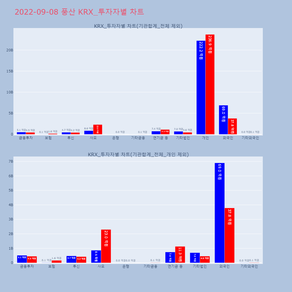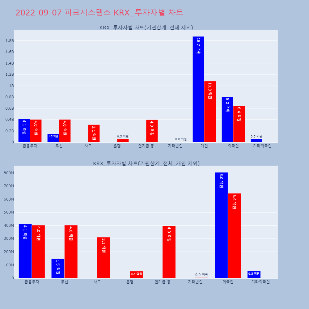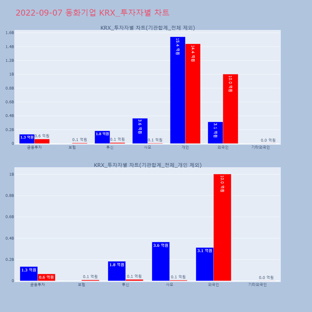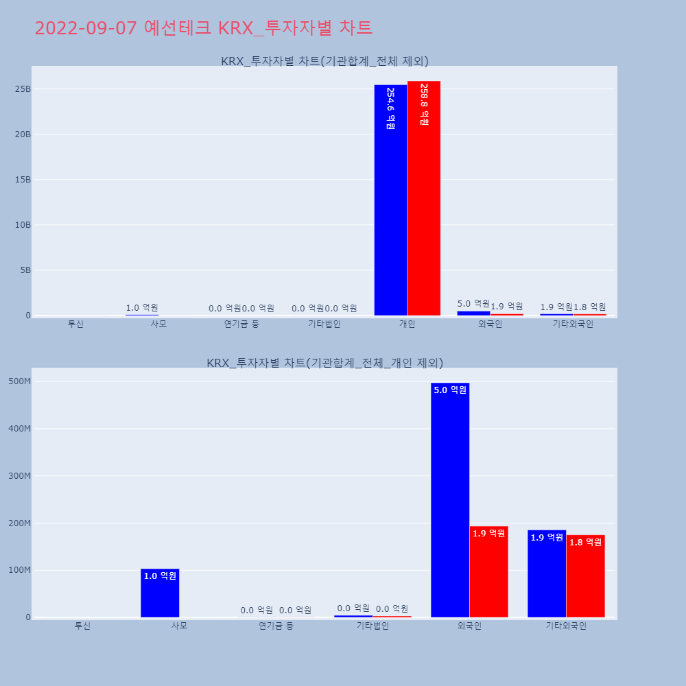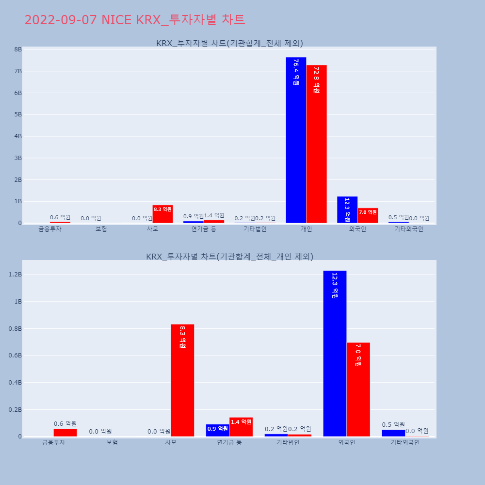 | 투자기관 | 거래량_매도 | 거래량_매수 | 거래량_순매수 | 거래대금_매도 | 거래대금_매수 | 거래대금_순매수 |