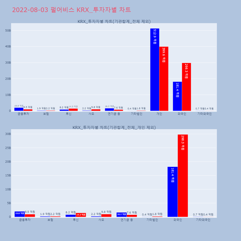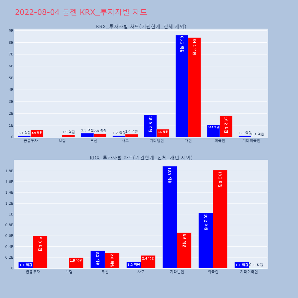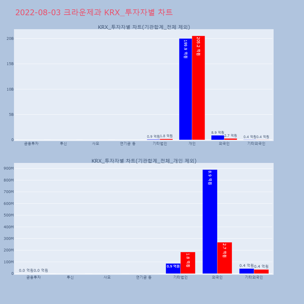 | 투자기관 | 거래량_매도 | 거래량_매수 | 거래량_순매수 | 거래대금_매도 | 거래대금_매수 | 거래대금_순매수 |