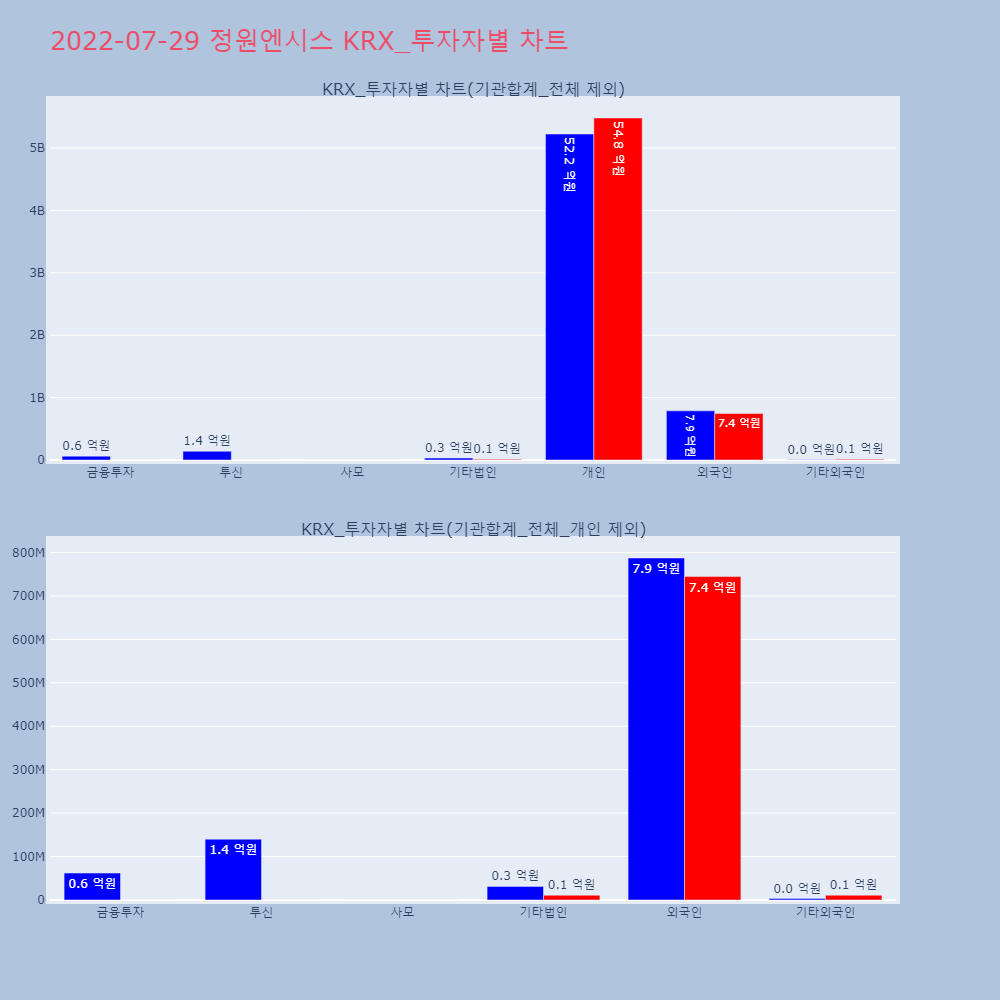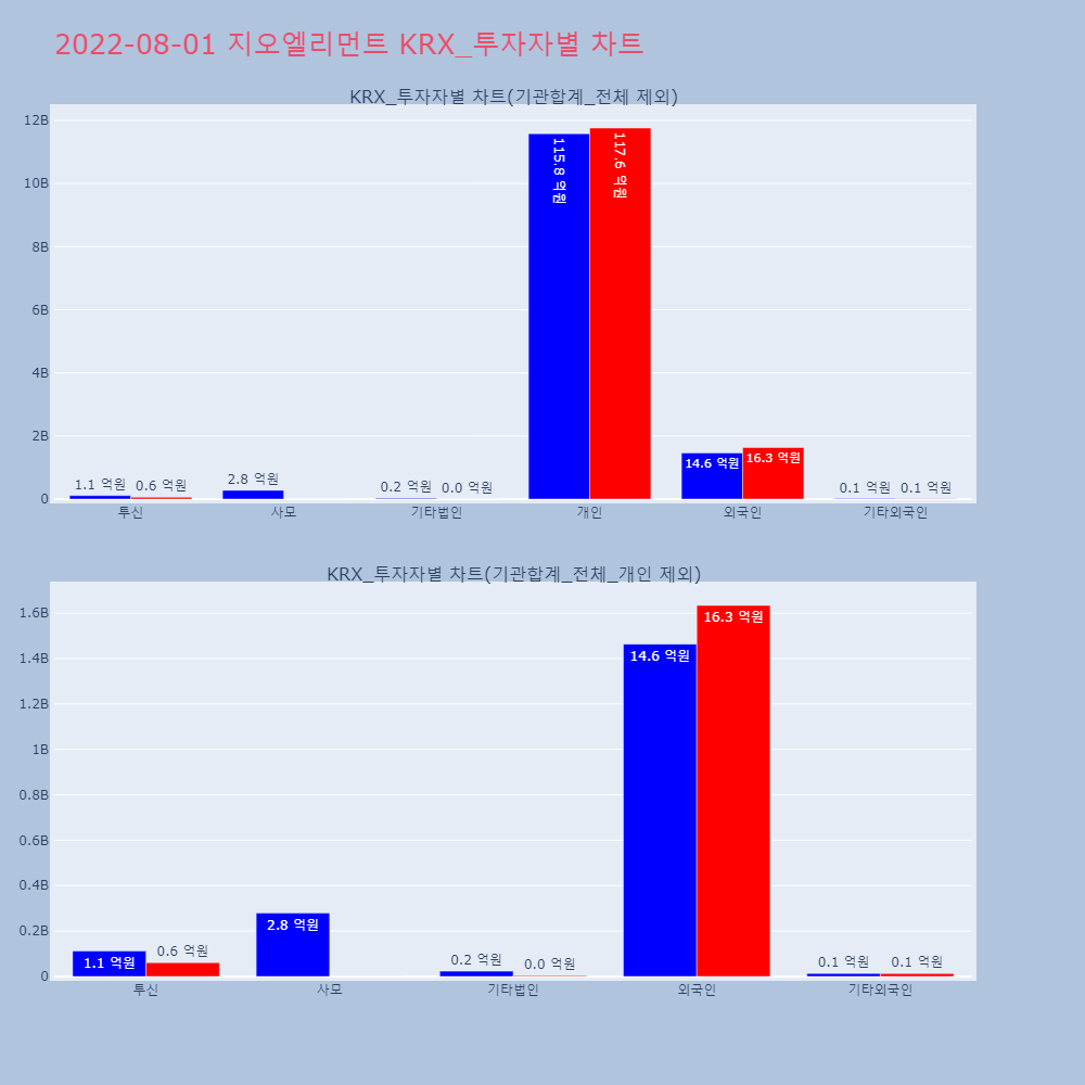 | 투자기관 | 거래량_매도 | 거래량_매수 | 거래량_순매수 | 거래대금_매도 | 거래대금_매수 | 거래대금_순매수 |