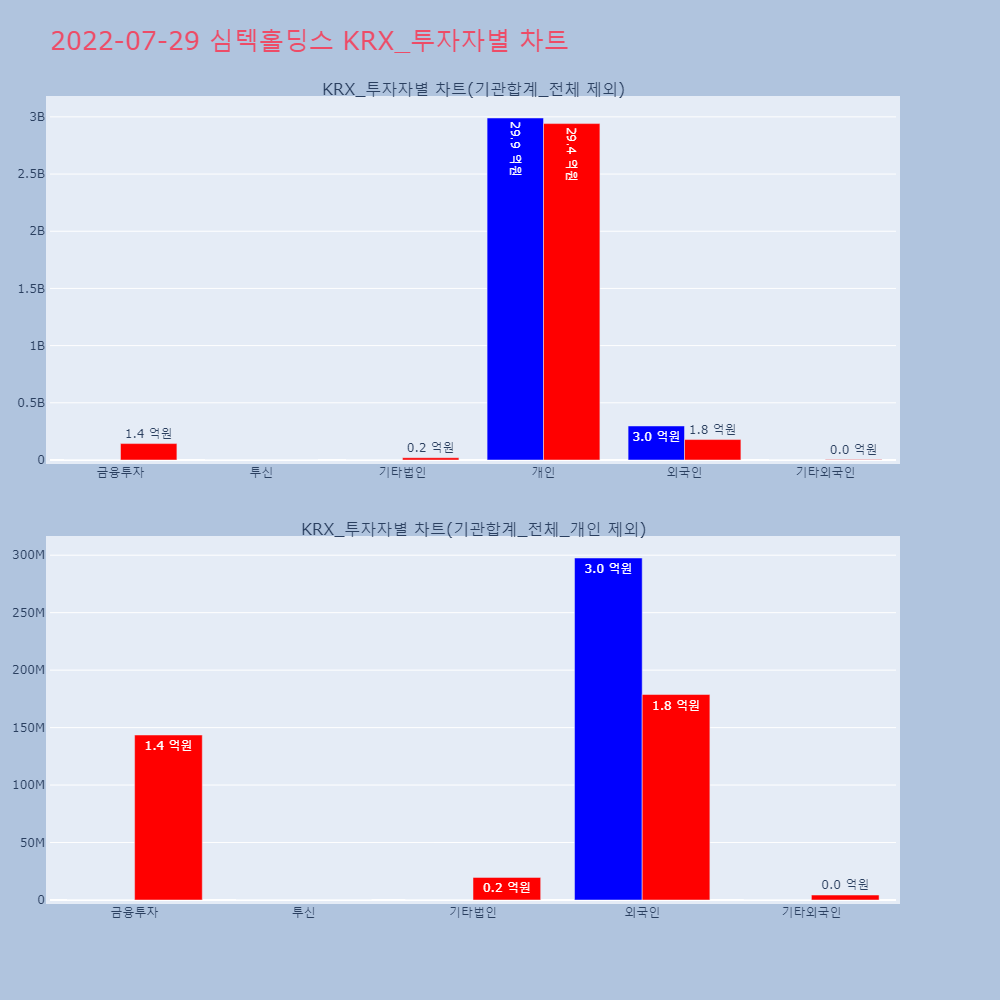 | 개인 | 304,228 | 185,387 | -118,841 | 40,206,375,000 | 24,401,467,000 | -15,804,908,000 |