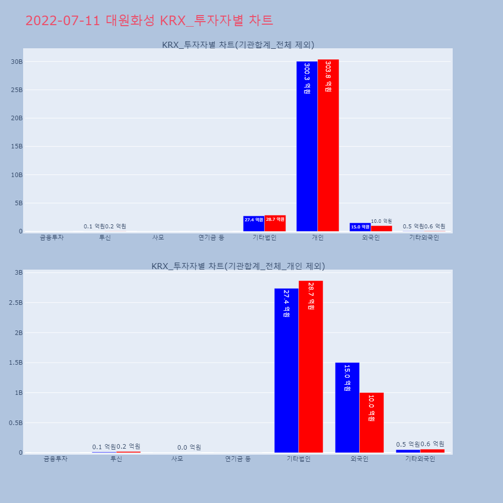 | 투자기관 | 거래량_매도 | 거래량_매수 | 거래량_순매수 | 거래대금_매도 | 거래대금_매수 | 거래대금_순매수 |