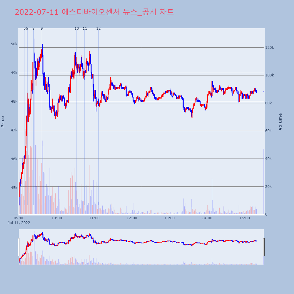 | 8 | 에스디바이오센서, +12.30% VI 발동에스디바이오센서(137310)가 VI가 발동했다. 전일 | 조선경제 | 에스디바이오센서 | 2022-07-11 09:22:54 |