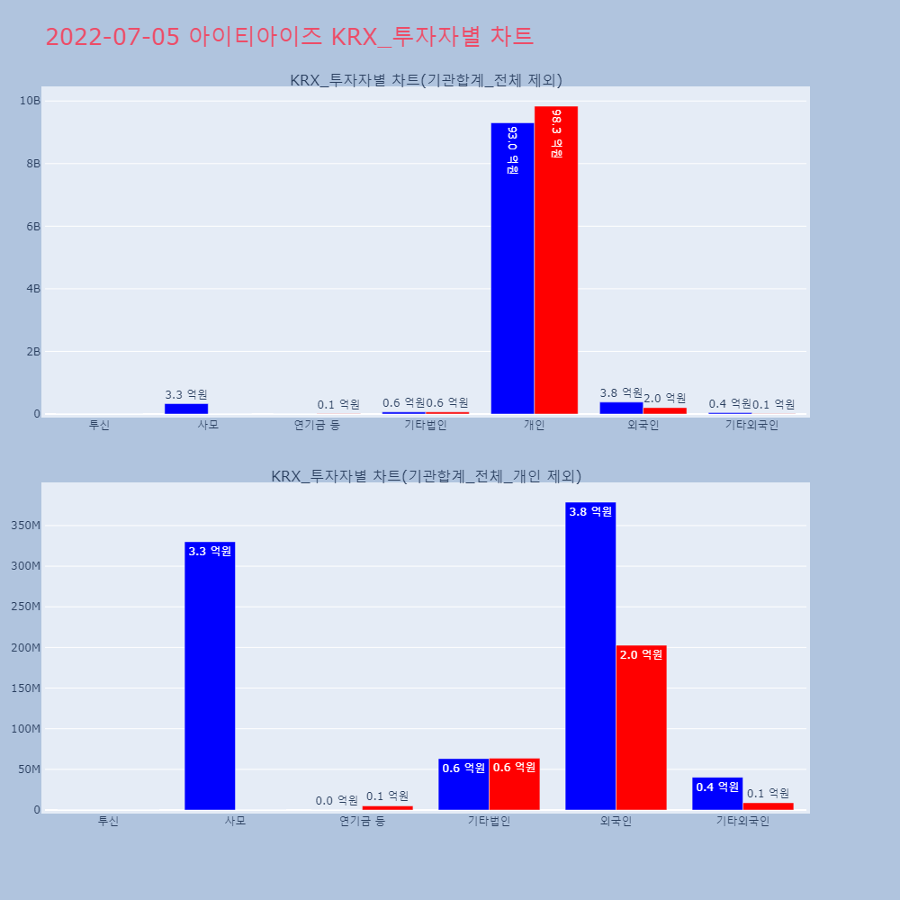 | 투자기관 | 거래량_매도 | 거래량_매수 | 거래량_순매수 | 거래대금_매도 | 거래대금_매수 | 거래대금_순매수 |