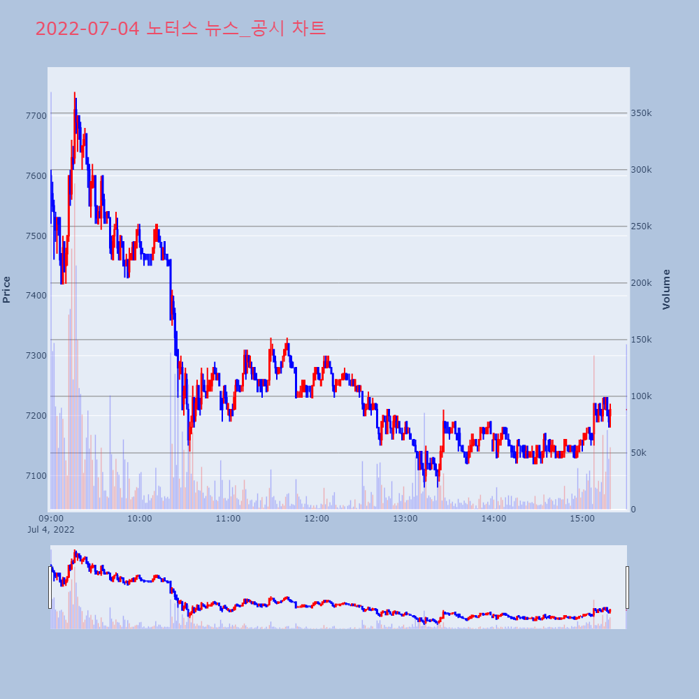 | 1 | 노터스, +2.91% 상승폭 확대노터스(278650)가 상승폭을 확대하고 있다. 전일 | 조선경제 | 노터스 | 2022-07-05 10:13:13 |