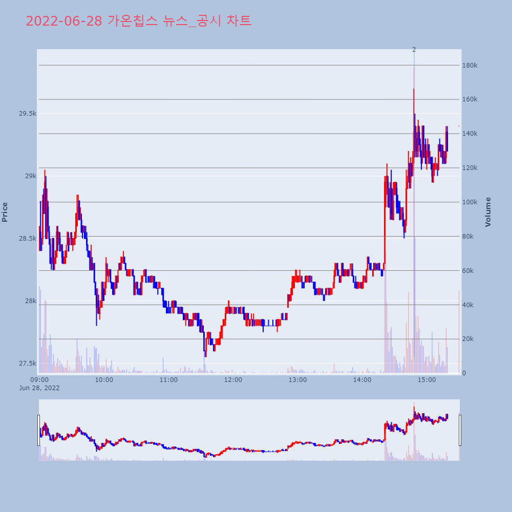 | 21 | [특징주] 가온칩스, 세계최초 삼성전자 3나노 반도체 대량 양산 임박소식에[파이낸셜뉴스] 가온칩스가 강세다. 삼성전자는 이번 주 | 파이낸셜 | 삼성전자 | 2022-06-28 14:48:22 |