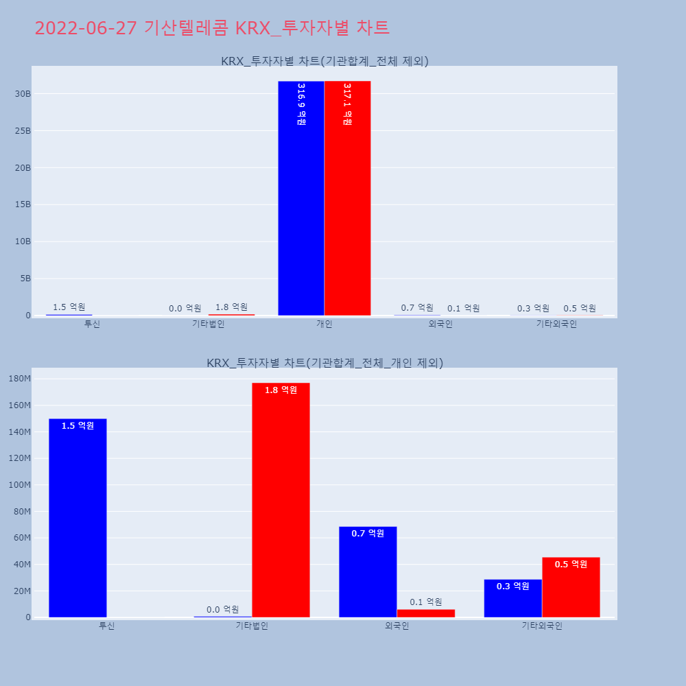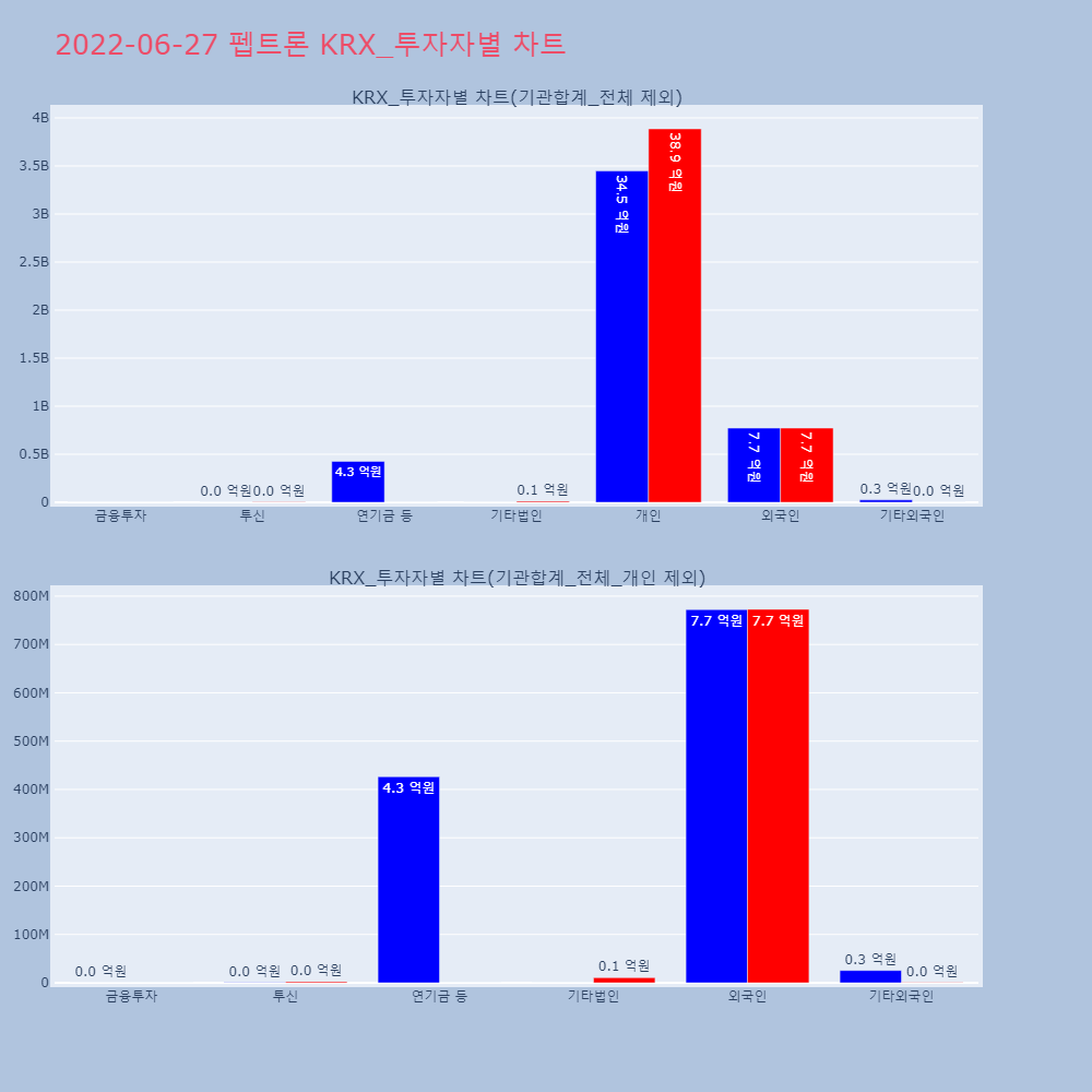 | 투자기관 | 거래량_매도 | 거래량_매수 | 거래량_순매수 | 거래대금_매도 | 거래대금_매수 | 거래대금_순매수 |